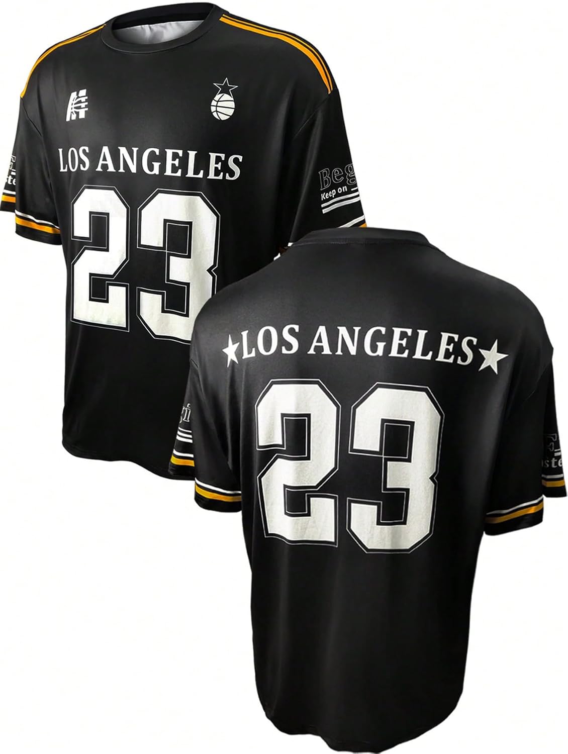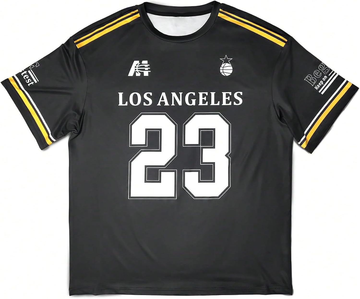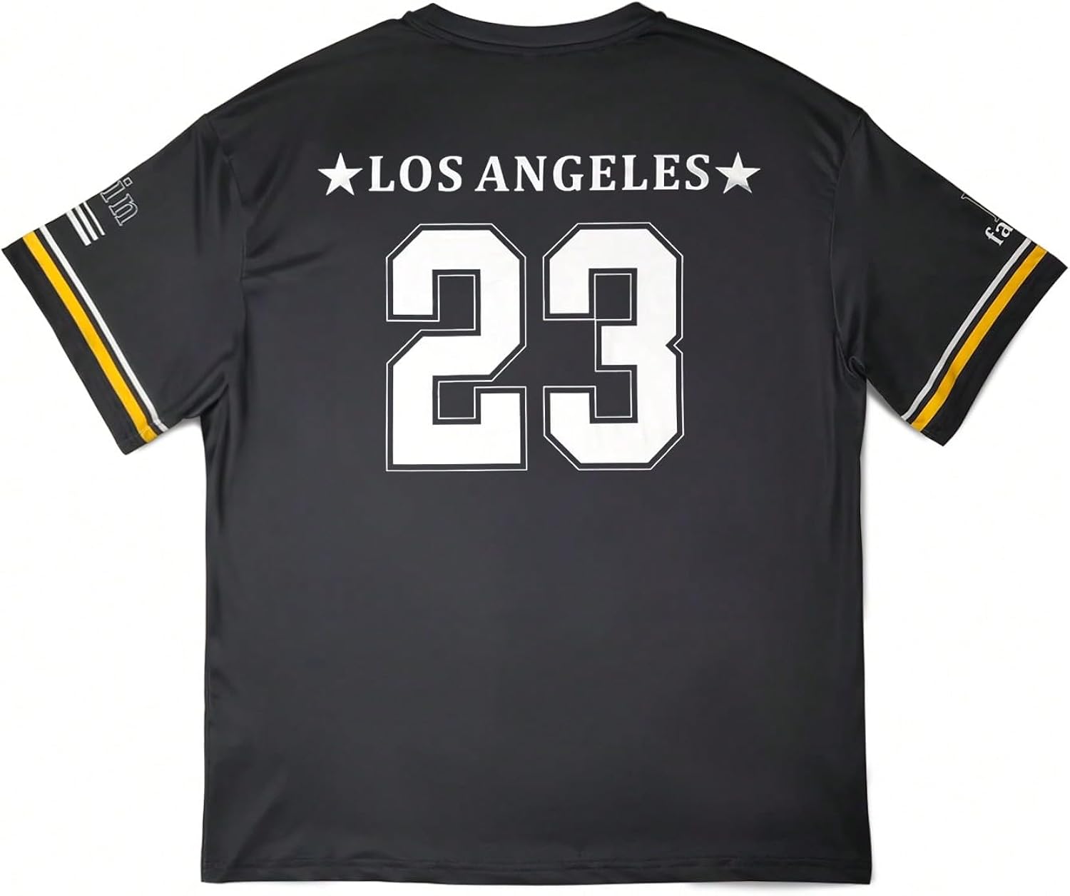 Floerns Men's Jersey Letter Print Graphic Oversized T Shirt Short Sleeve Crewneck Casual Football Jersey Shirts
