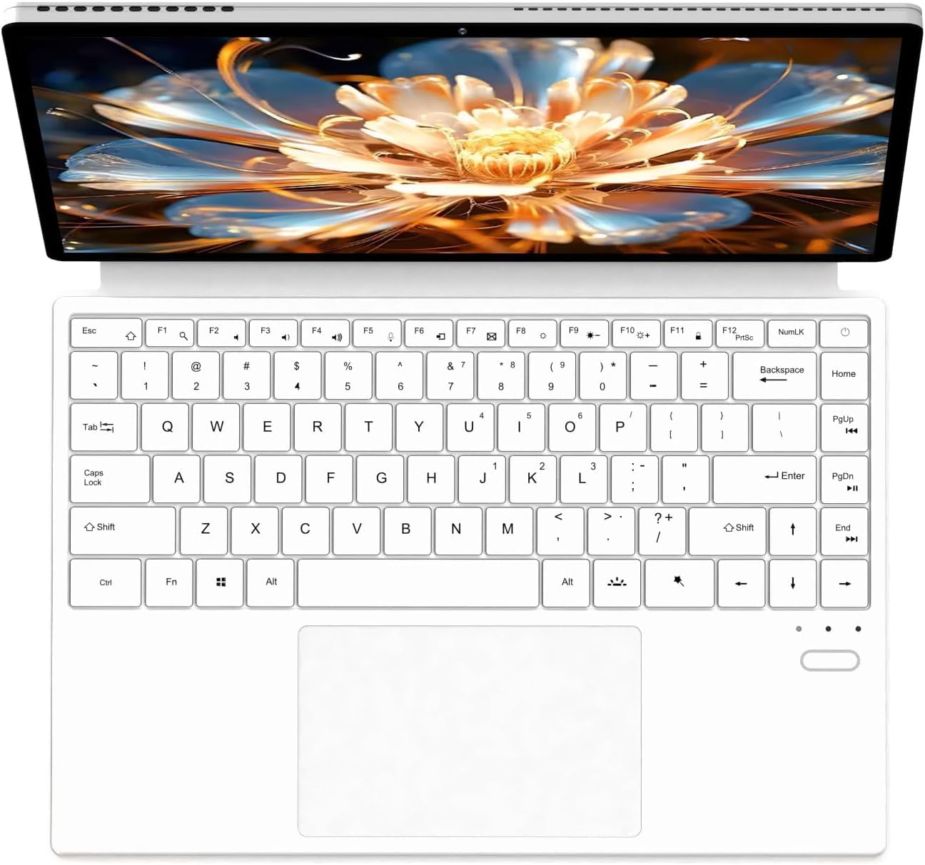 Tablet supports any angle fixation and comes with detachable backlit keyboard.