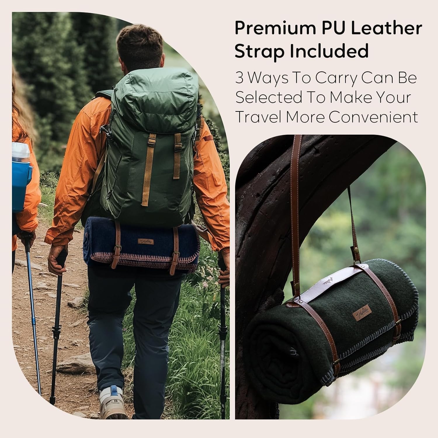 CONVENIENT PORTABILITY - Our wool throw blanket is equipped with a premium PU strap, strong yet flexible, you can easily carry this wool blanket wherever you go, ensuring warmth and comfort at all times.
