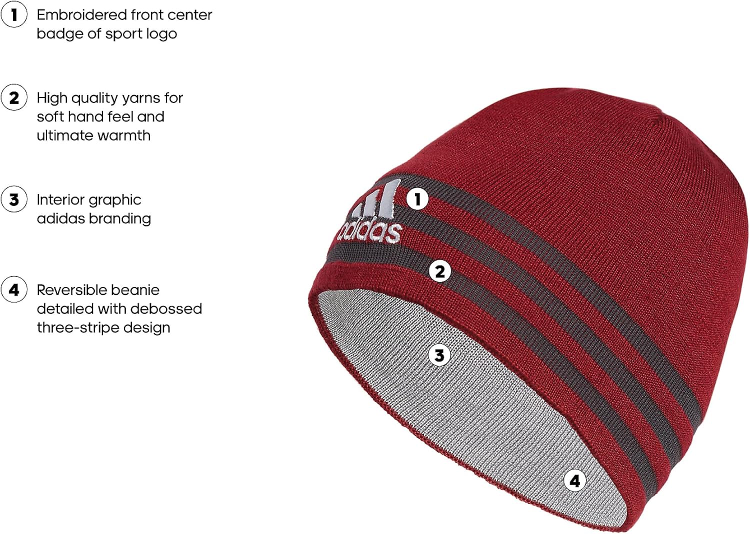 Adidas Men's Reversible Skully Beanie – Knit Winter Skull Cap, Standard Fit