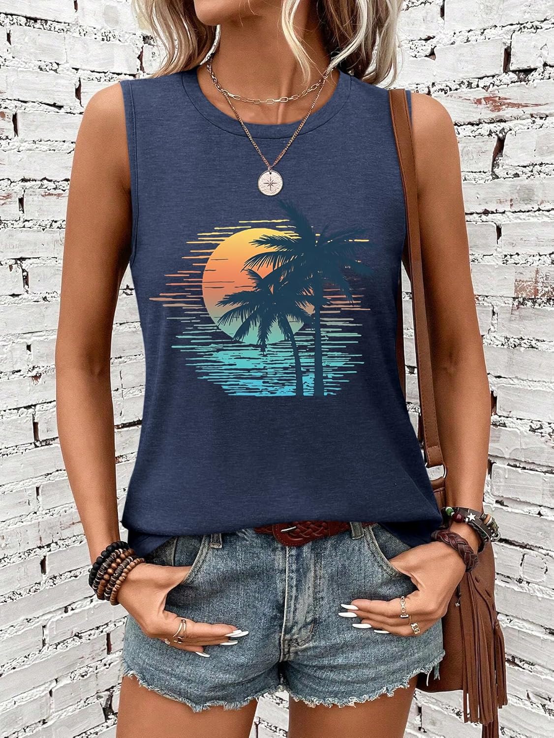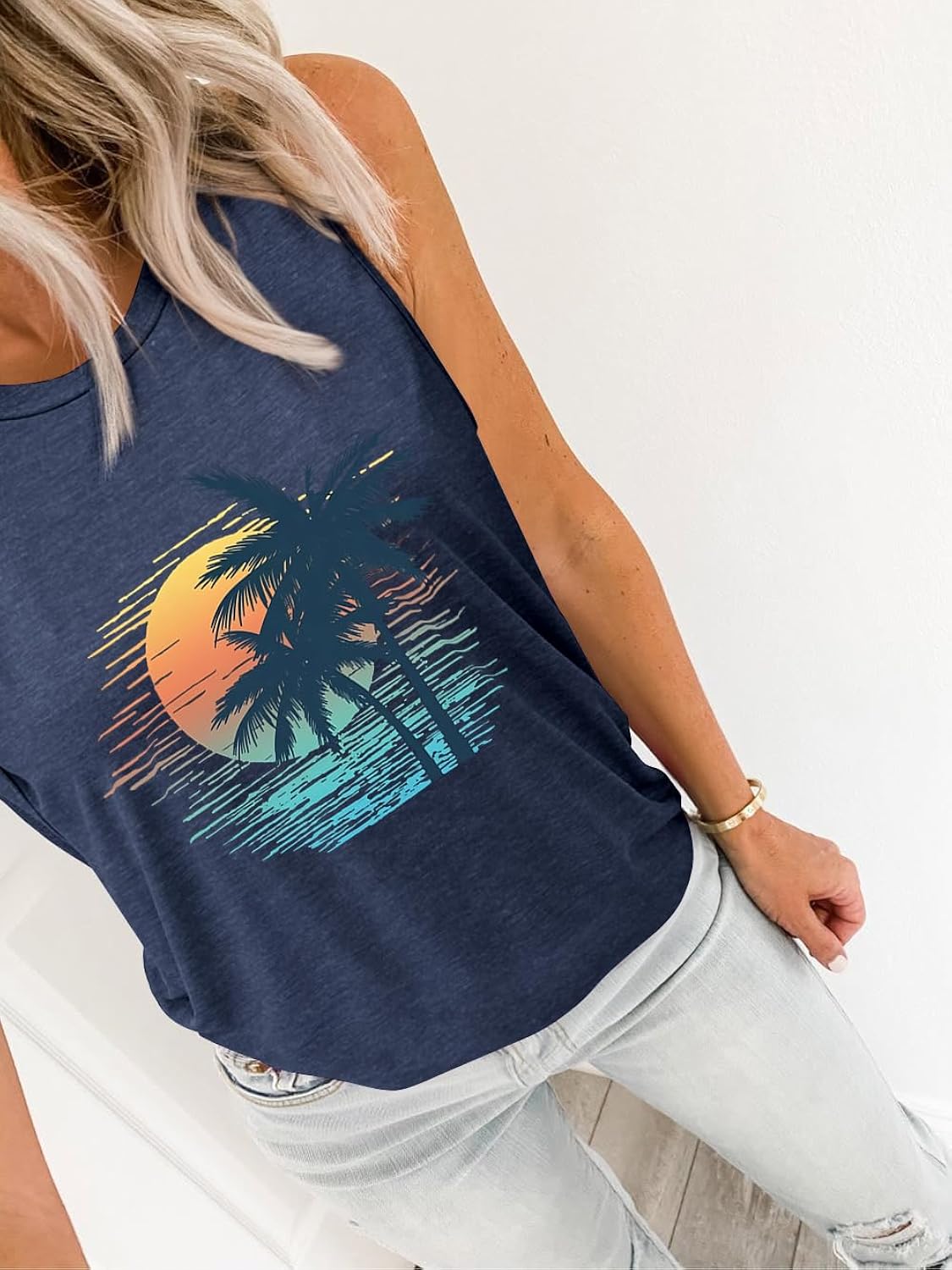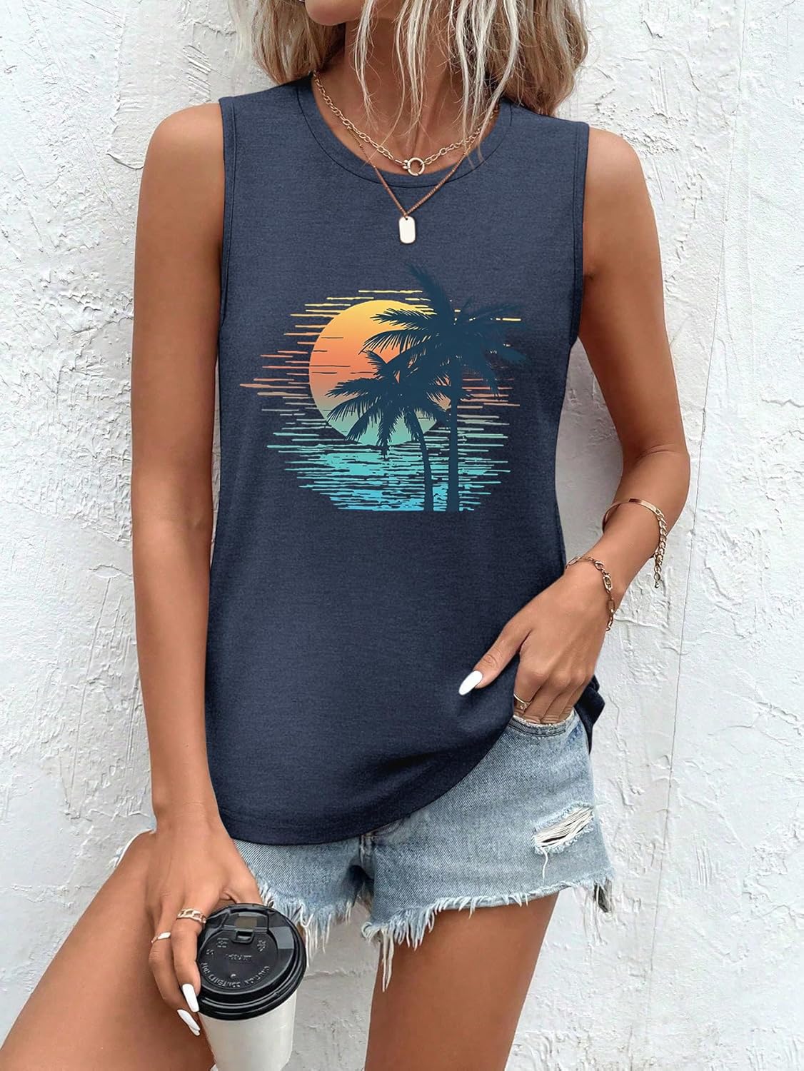 **Multi-Scenario Versatility** Effortlessly shift from office to vacation with this 2025 summer staple – graphic-printed crewneck tank tops - 7-in-1 Function for Office/Gym/Vacation | Wrinkle-Free & Odor-Resistant.