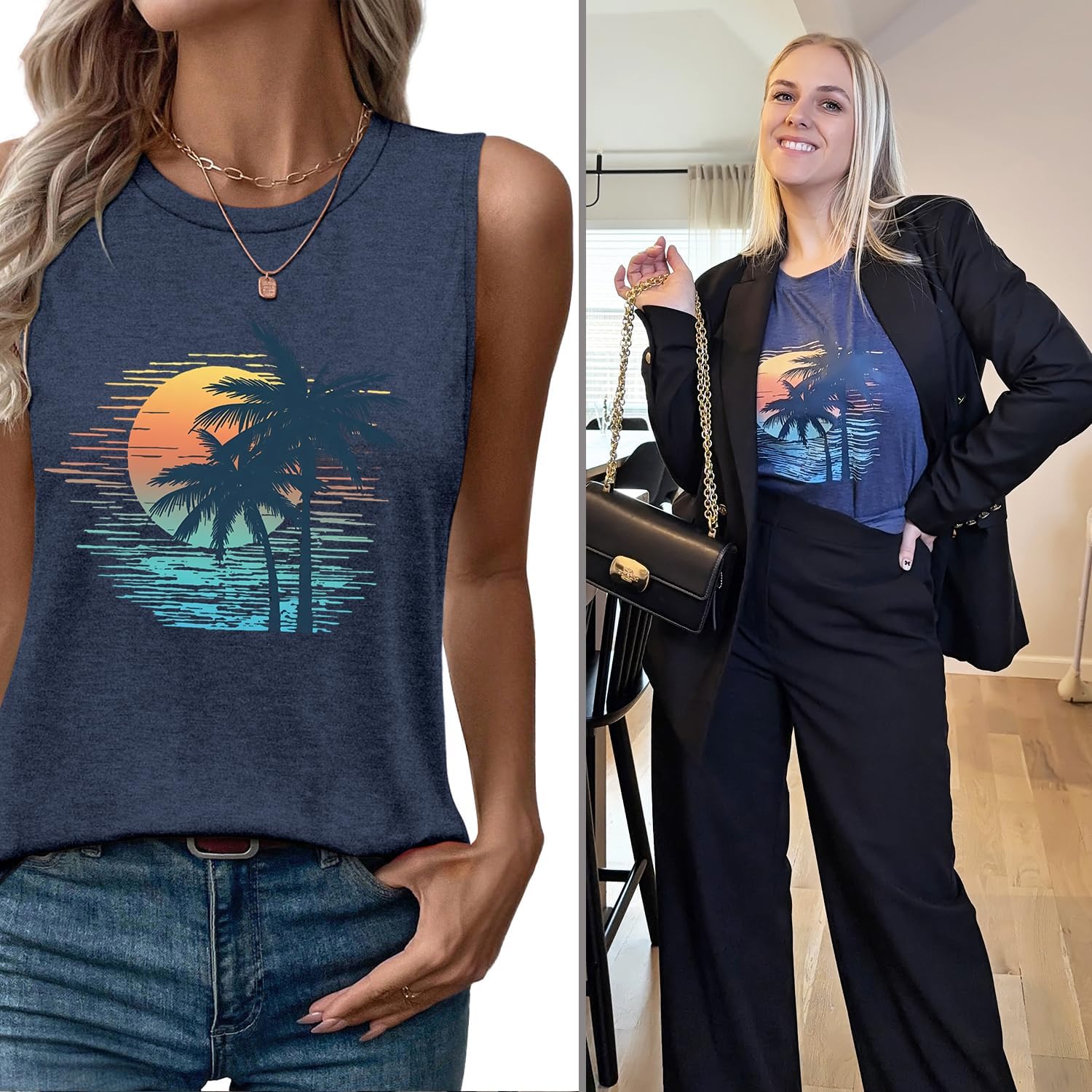 LUXVEER Sleeveless Tank Tops for Women 2025 Summer Casual Blouses Graphic Tees Loose Fit Crewneck Vacation Outfits Shirts