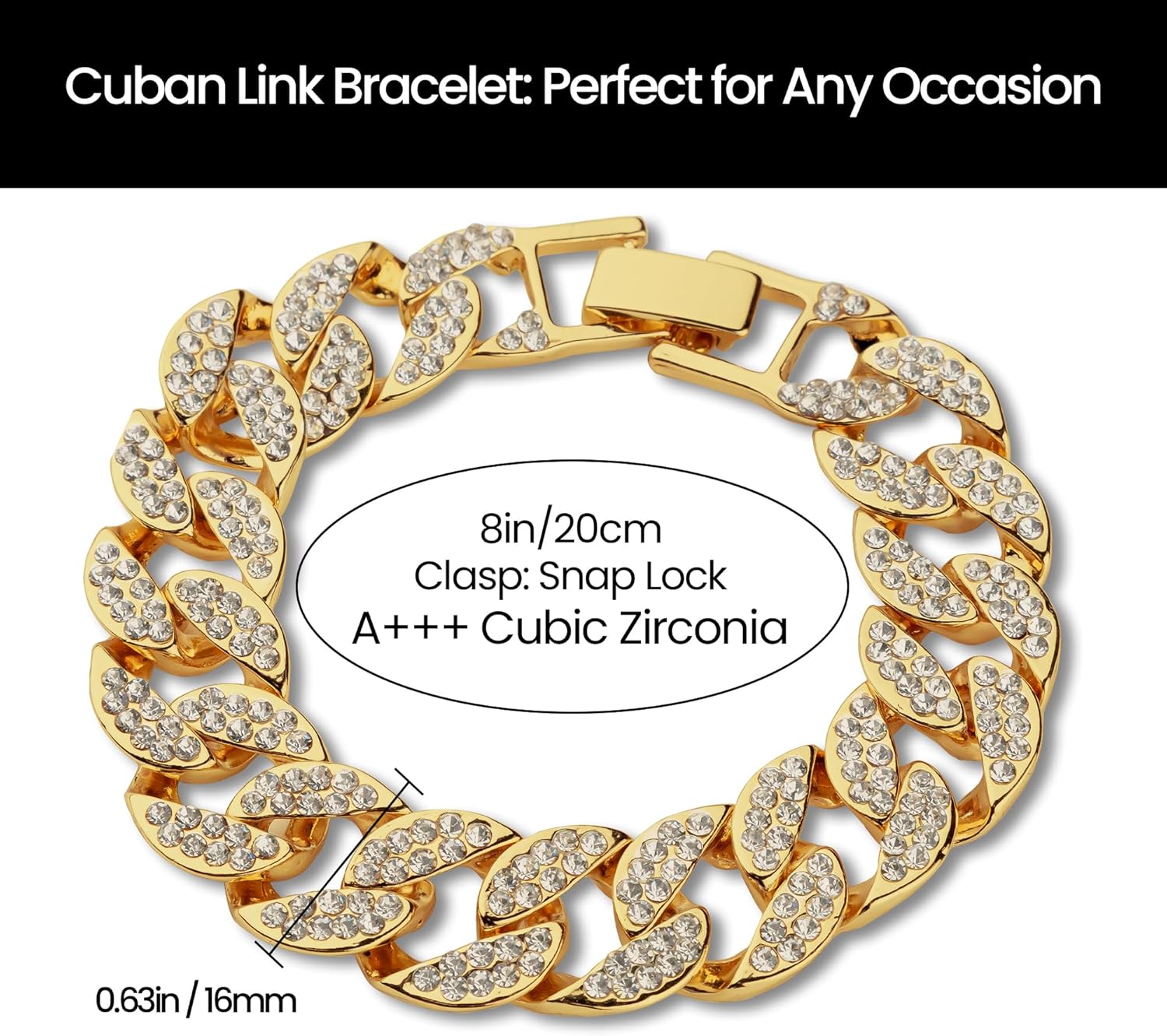 Complete Luxury Set – Elevate your look with a perfectly matched 18" 16MM wide gold-plated Cuban link necklace and an 8" 16MM wide fully iced Cuban bracelet. Each piece is meticulously crafted and fully encrusted with dazzling VVS clarity stones, ensuring an eye-catching sparkle wherever you go.