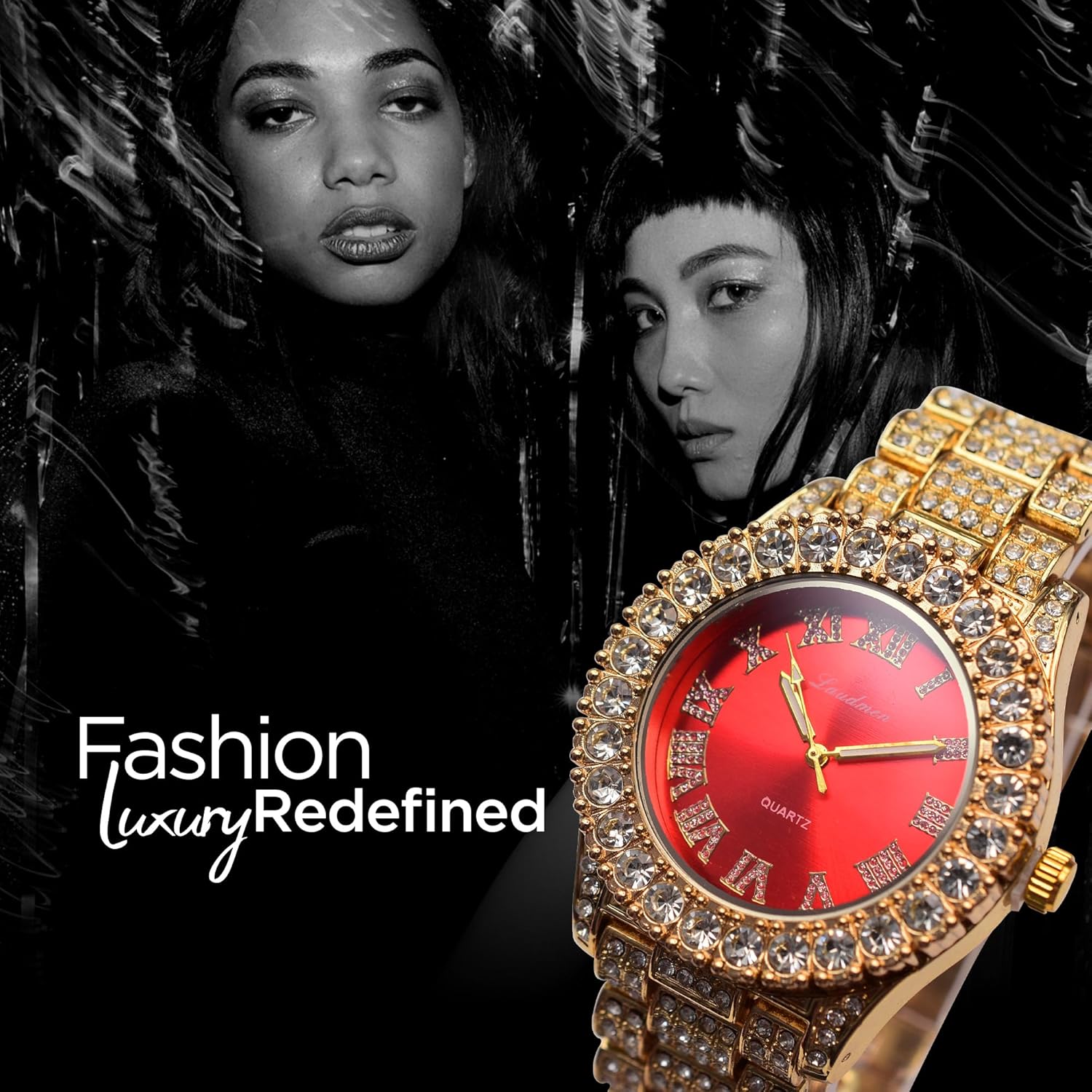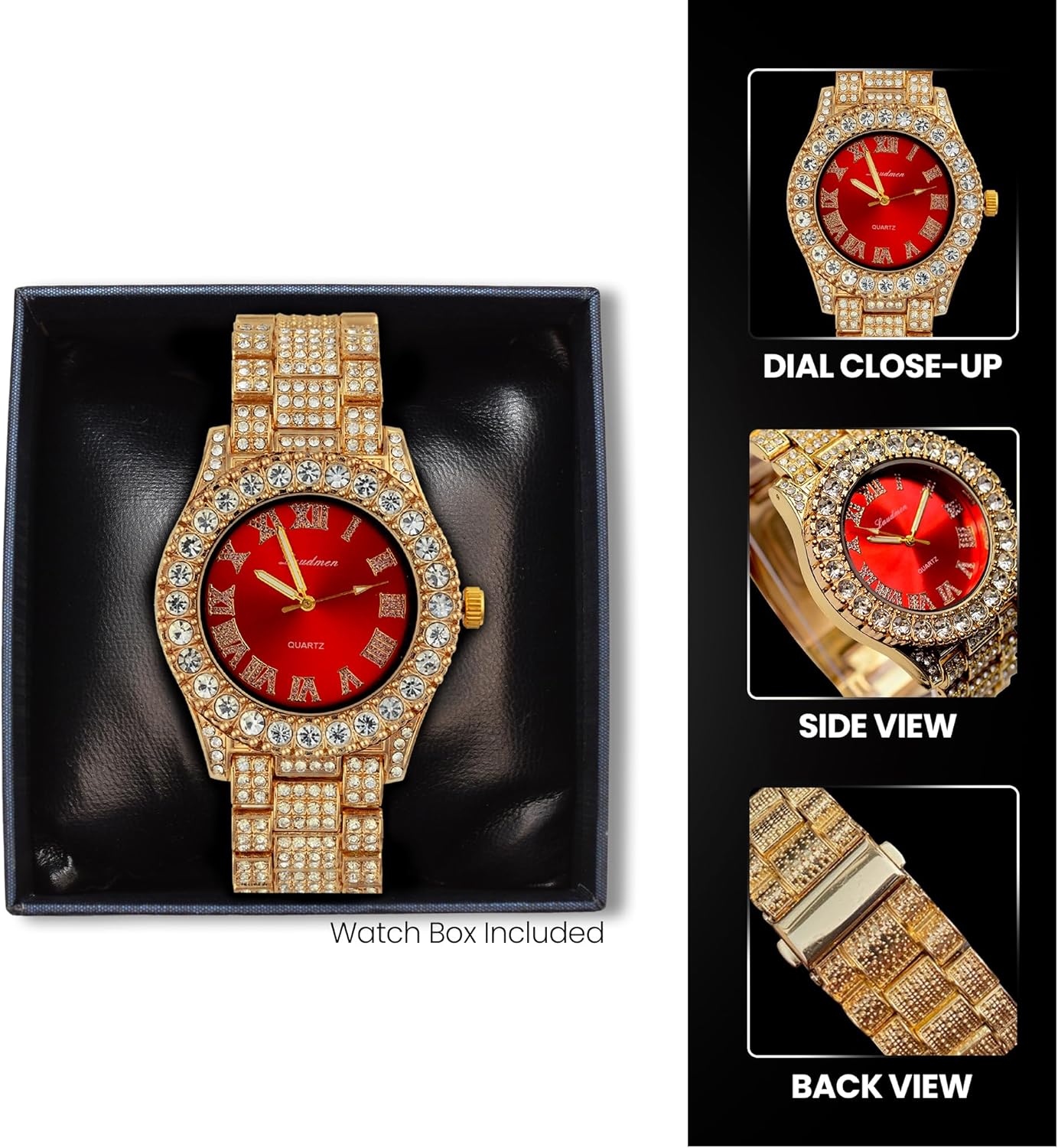 Bold, Dazzling Design – Turn heads with this fully iced-out 44MM gold-plated watch, featuring a vibrant, easy-to-read numerical dial and a brilliant iced bezel that reflects light from every angle. Designed for those who embrace bold fashion, this timepiece exudes confidence and sophistication.