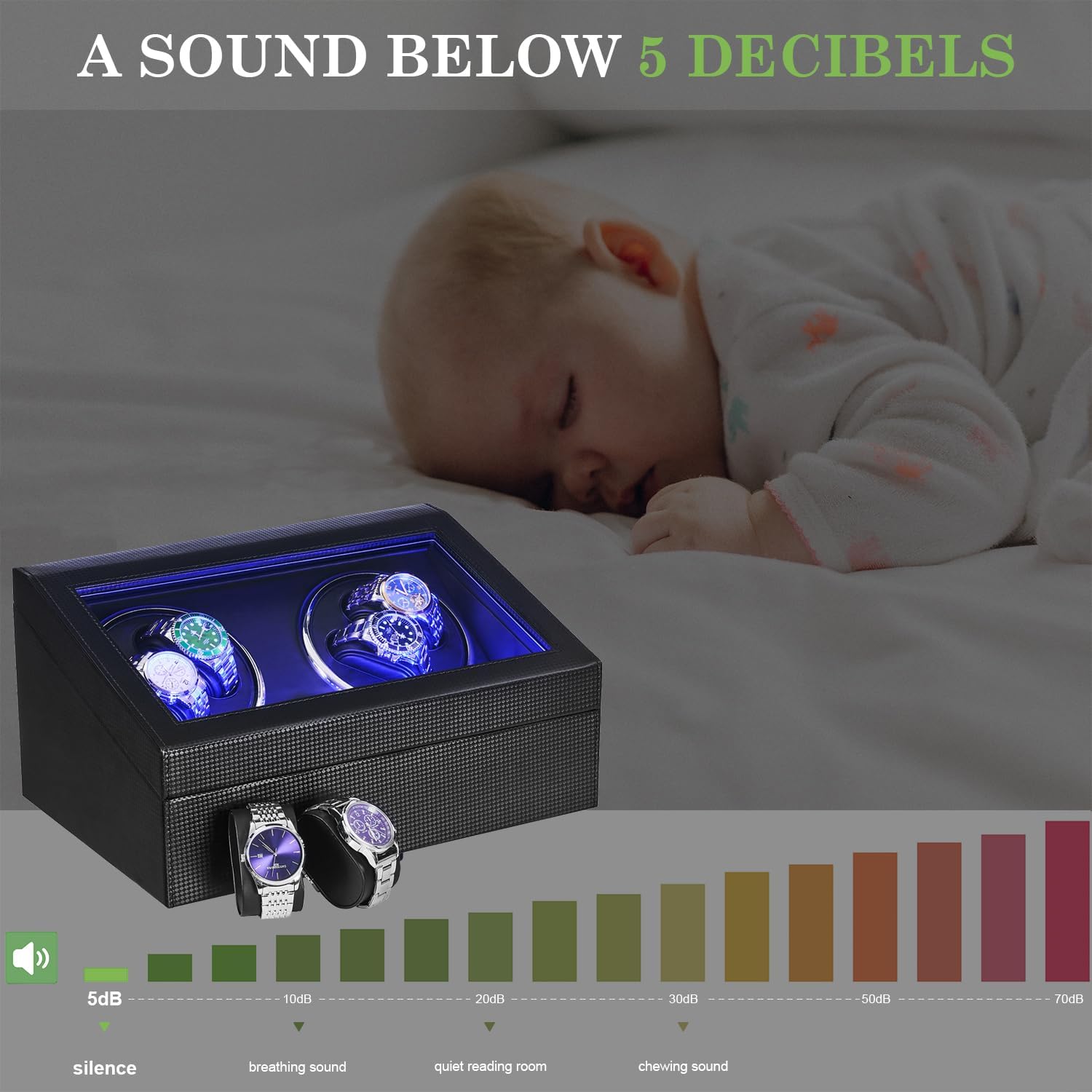 SUPER QUIET MABUCHI MOTOR : The sound of this watch rotator is only 5 decibels during operation, barely audible, even on quiet nights without disturbing your sleep. So you can use it in your bedroom or office