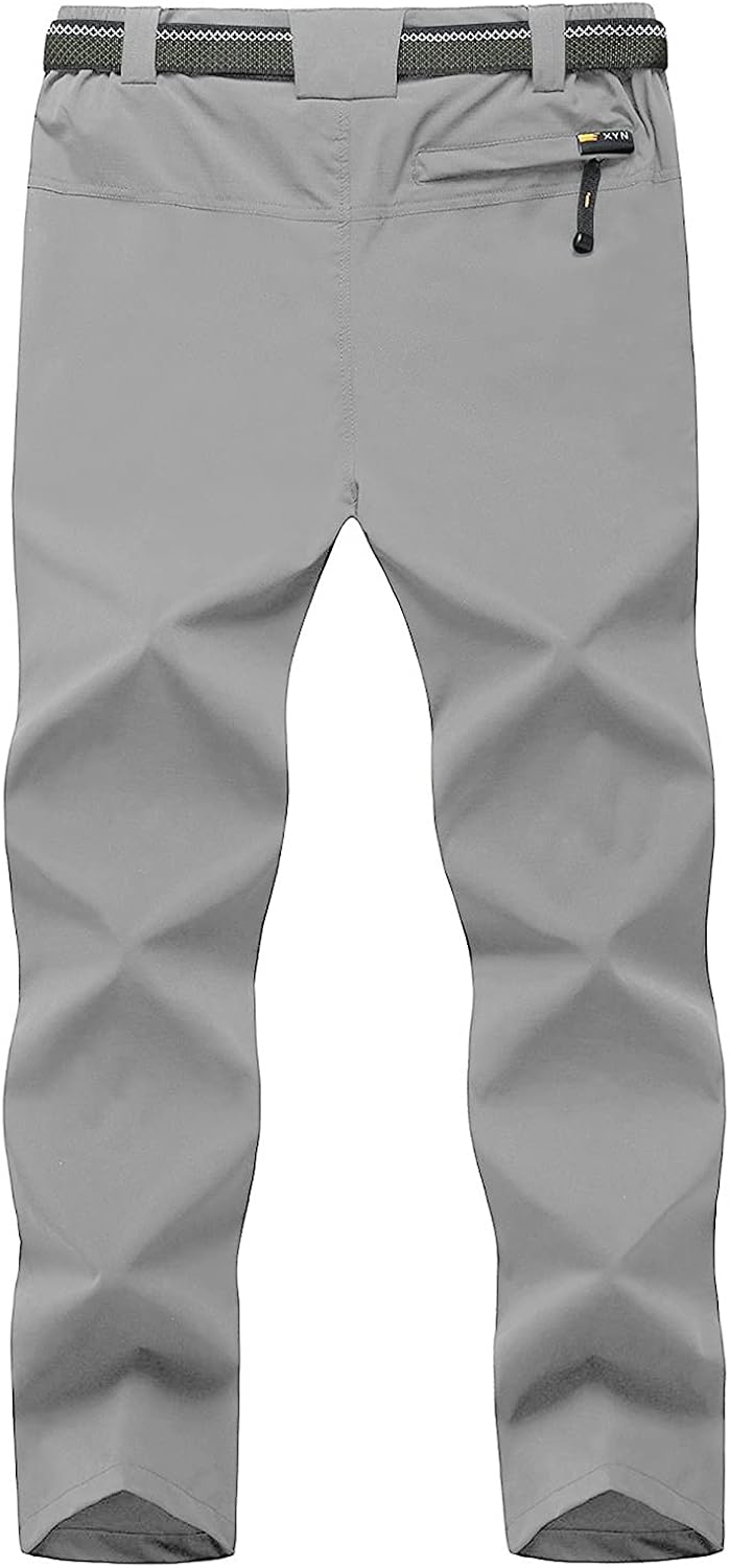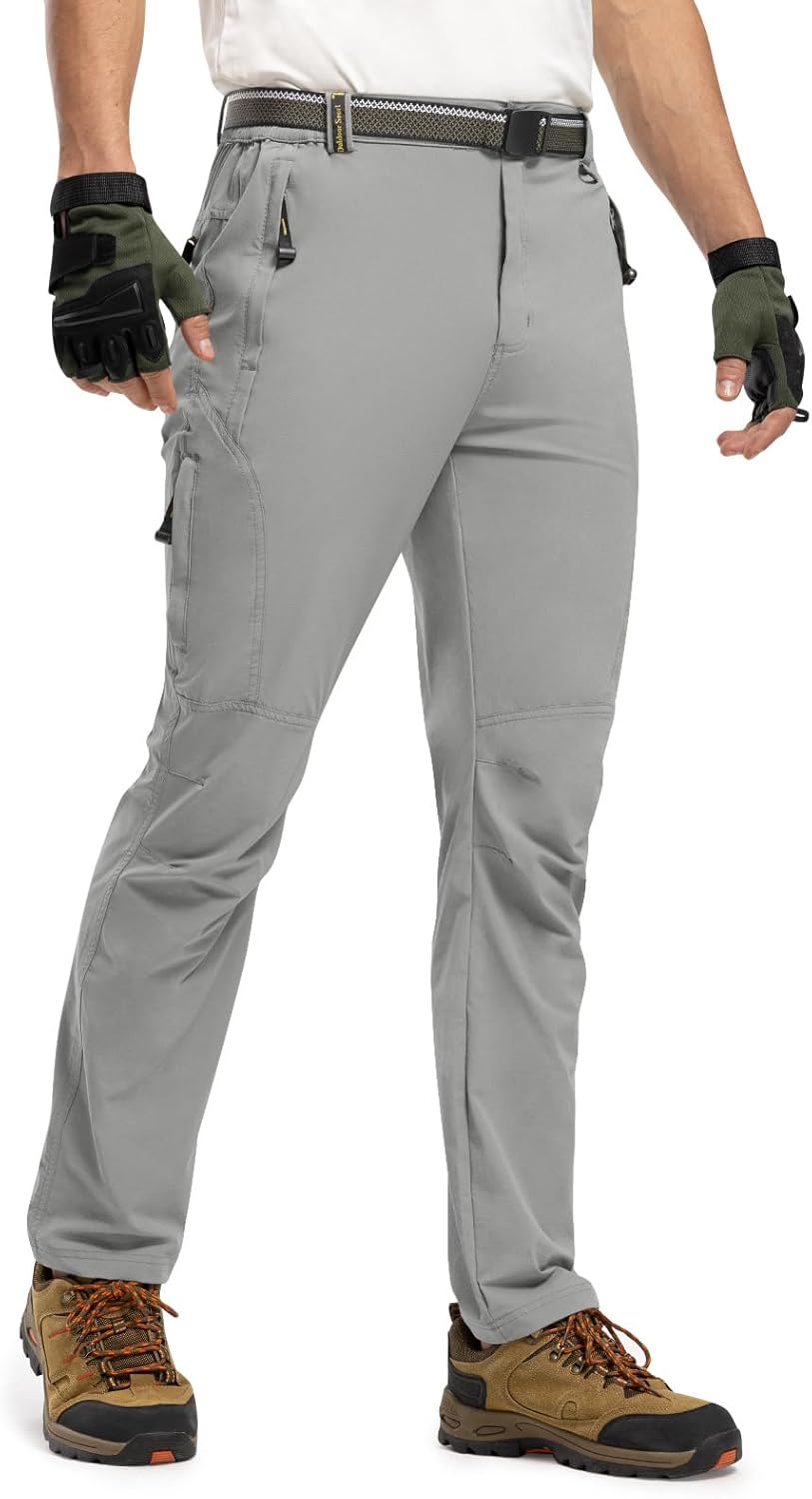TBMPOY Men's Lightweight Hiking Pants with Belt 5 Zip Pockets Waterproof Quick-Dry Travel Fishing Work Outdoor Pants