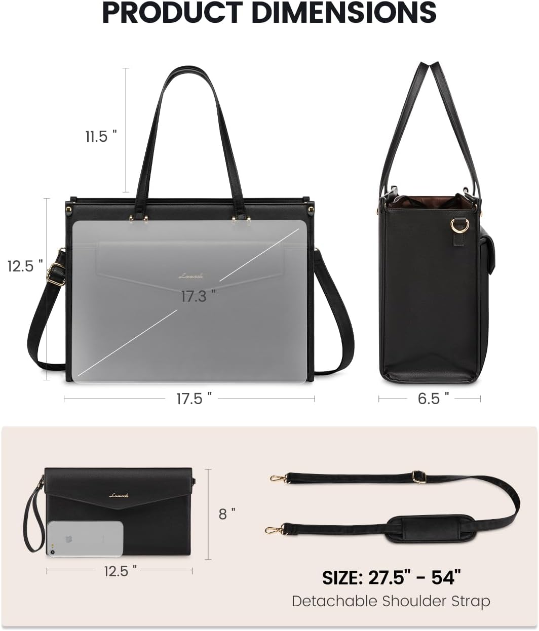Professional Chic Laptop Tote Bag: Our laptop bag for women measures 17.5*6.5*12.5 inches, weighs only 3.3 pounds, and can stand upright on its own due to its superior support structure. Constructed with premium crosshatch textured PU leather and reinforced with high-density nylon lining, the work tote bags for women is not only tear-resistant but also waterproof and easy to clean, blending durability with sleek sophistication