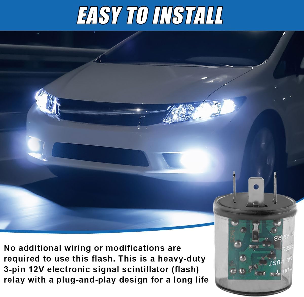 【Easy And Fast To Install】:This 3-pin flasher relay adopts a plug-and-play design, which is easy and fast to install, there is no need for additional wiring or modification, you just need to plug it directly into the corresponding socket of the vehicle's electrical system.