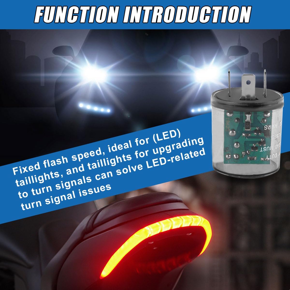 【Function】:This LED turn signal relay can directly replace the OEM 3-wire flasher, quickly solve the problem of high-frequency flashing, micro-flash or residual light, and other abnormal flashing problems, to ensure that the automotive LED lights work properly, to provide you with safe driving environment.