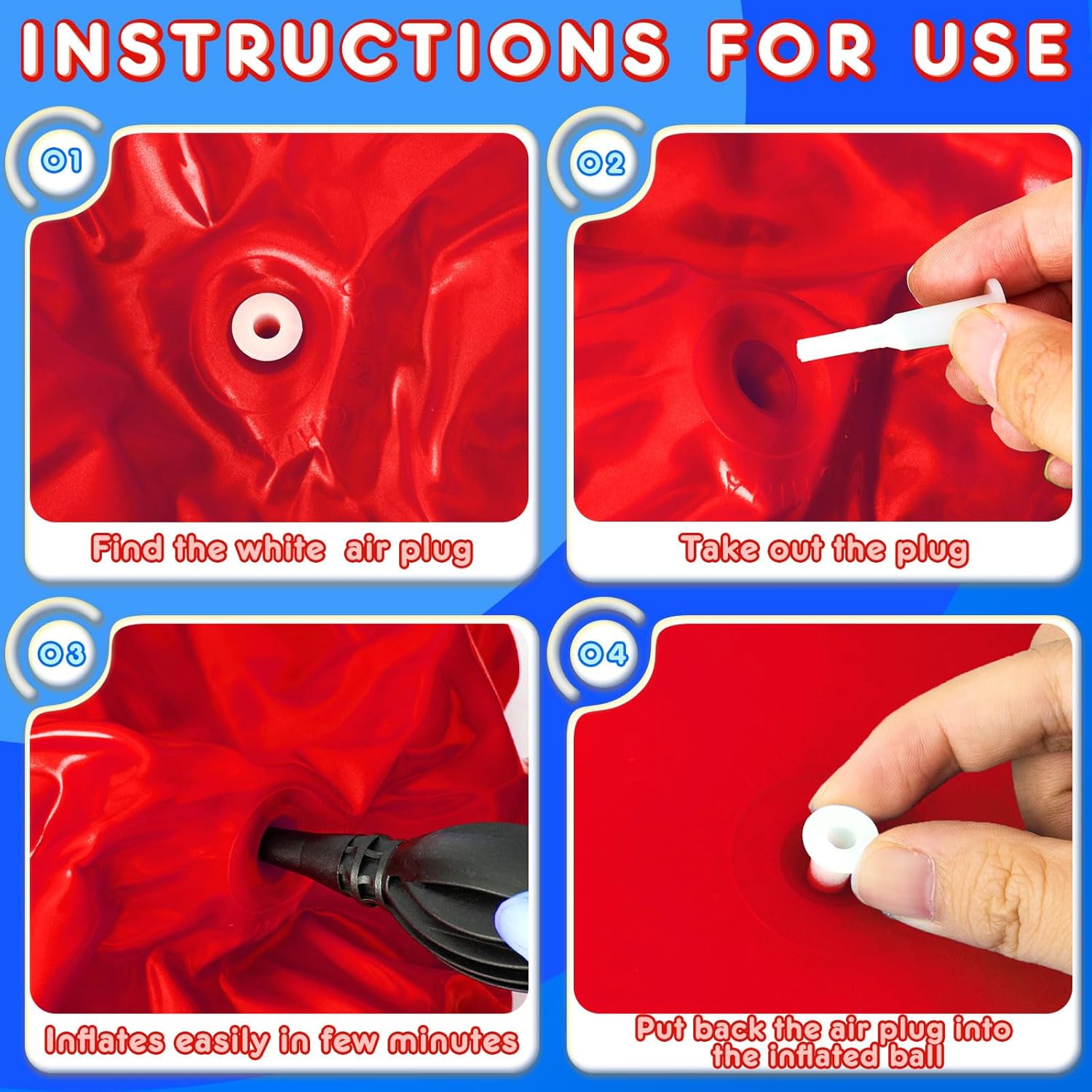 Large Size: the diameter of each bounce ball toy is about 29 inch/ 74 cm when the air is inflated to the full, The size is suitable for adults to exercise and bring joy to the whole family; A little air will leak when removing the filler plug; There is a handle above the ball that can be grasped