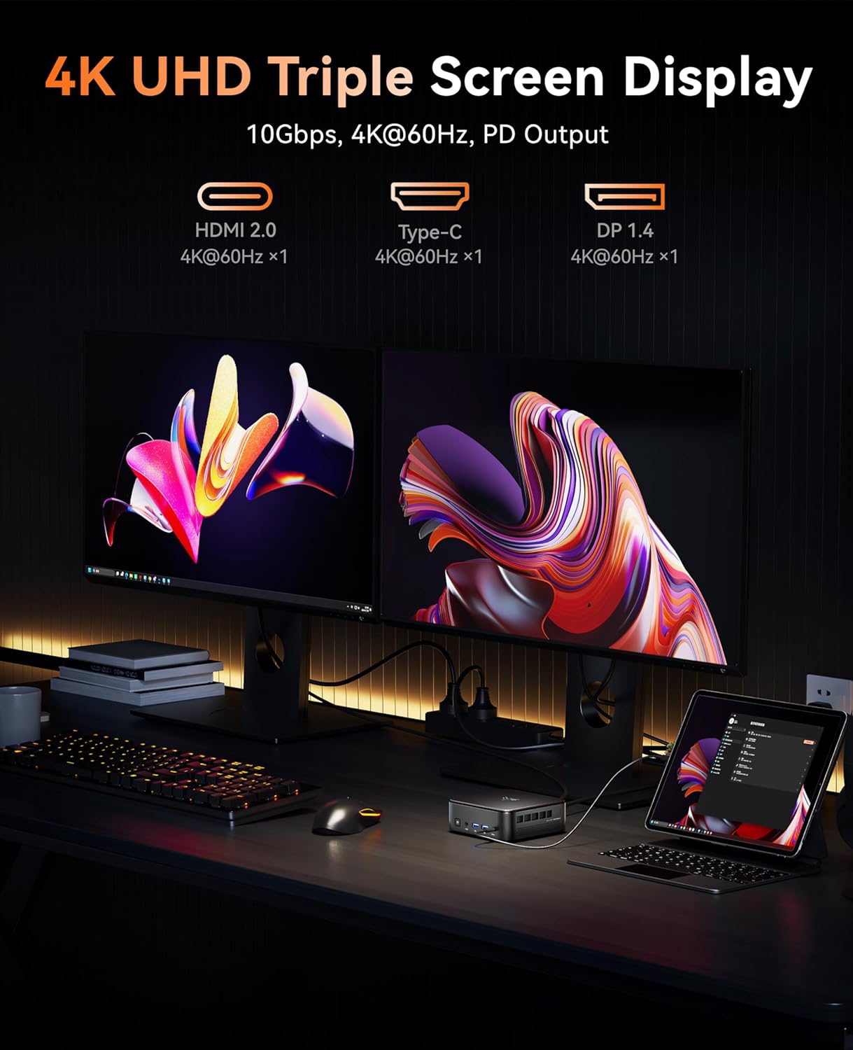 【Exceptional Graphics & Rich Connectivity】KAMRUI gaming pc come with Radeon RX Vega 8 Graphics(Graphics Frequency 2000 MHz) , offering a 4% enhancement in multitasking performance over preceding Zen 2 processors,Output 4K@60Hz UHD video signals through DP + HDMI2.0 + USB3.2 Gen2 Type-C, realize triple display immersive visual experience, and help you focus and inspire when creating. Whether for office work or watching HD movies, you can enjoy high-quality visual experiences. In addition, 2*USB3.2 Gen2 Type A port(10Gbps) + 4*USB3.2 Gen1 Type-A port(5Gbps) meet diverse connection needs, enhancing gaming performance on compact gaming mini pc through rapid data transfers and boosted efficiency.