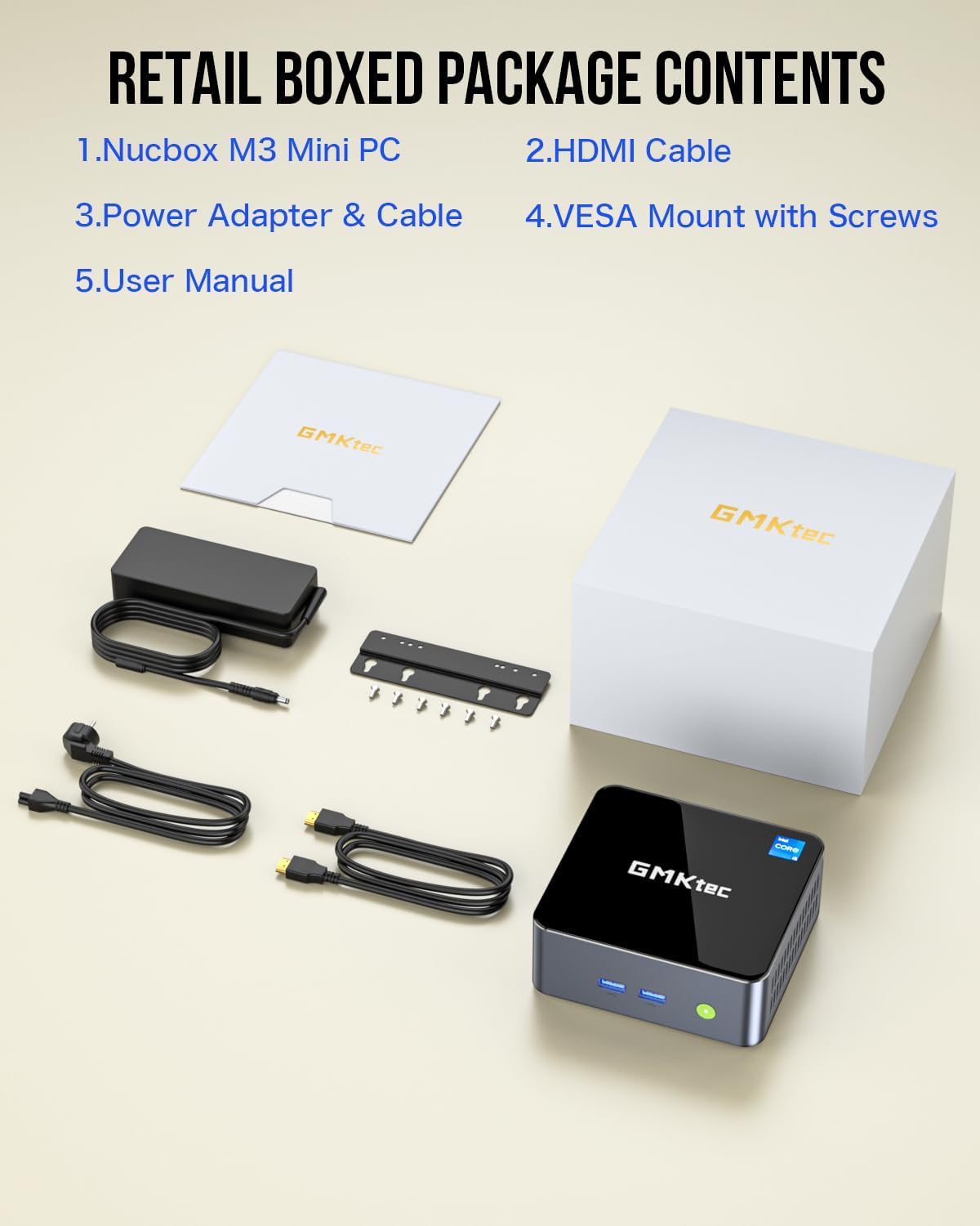 【16GB DDR4 Dual Channel RAM 512GB PCIe 3.0 SSD Drive】Equipped with fast Dual Channel 16GB (8GB*2) DDR4; supports expansion to 64GB (Not Included) and 512GB PCIe 3.0 M.2 2280 NVMe SSD Hard Drive; supports expansion to 2TB (Not Included). This mini computer runs faster than previous Core i5 / AMD Ryzen 5 processors and offers fast response whether it's gaming or rendering rich 3D graphics. Strong performance, perfect for daily use, such as business office, gaming entertainment, home theater, etc.