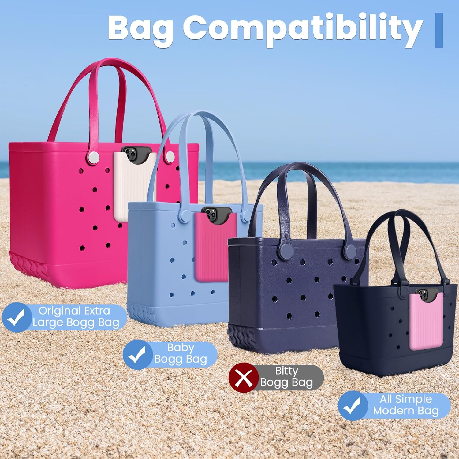 【 Bag Compatibility 】Designed to fit Original Large/Extra - Large Bogg Bags, Medium Baby Bogg Bags, and all Simple Modern bags. NOT FIT Bitty Bogg Bag(Small). As a great bogg bag insert accessory, it attaches securely inside or outside, doubling as bag charms