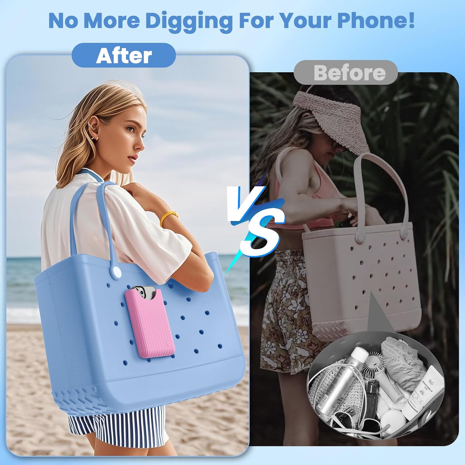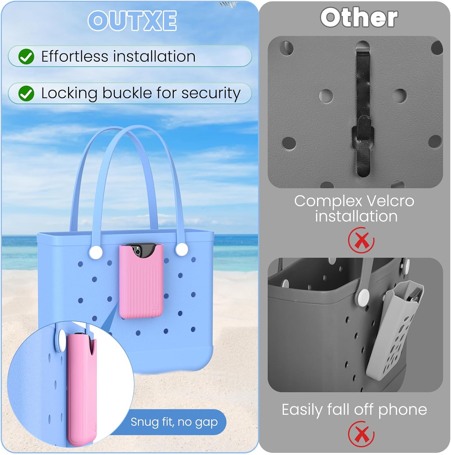 【Never Dig for Your Phone Again】OUTXE Phone Holder for Bogg Bag keep your phone within easy reach, whether at the beach, pool, picnic, or in daily life. No more rummaging or worrying about losing phone. Keep phone secure and handy!