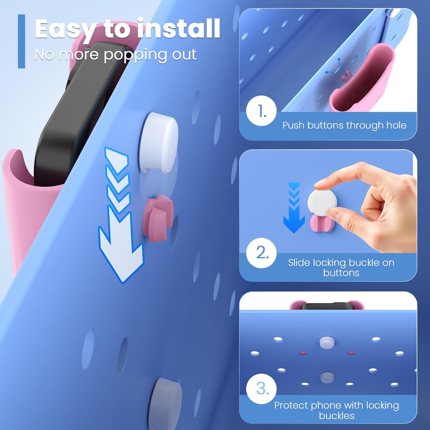 【 Effortless Installation 】​Install in seconds! Push button into bogg bag, slide locking buckle into button. Quick, secure, stylish. No more struggling with ugly, hard - to - attach Velcro straps. Simple design, maximum phone safety, minimal hassle