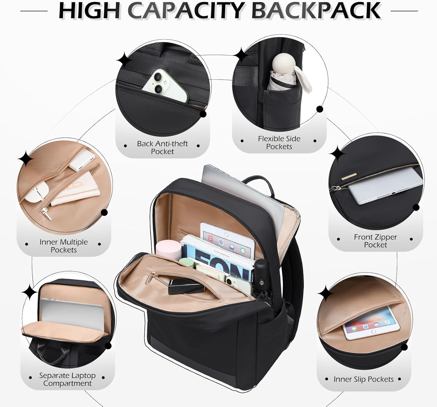 LARGE CAPACITY: Wide Open Teacher Nurse Backpack for women Made of high quality water resistant nylon fabric, metal double-way zipper pulls ensure extreme durability. Work backpack has a separate laptop compartment that it could hold 15.6 inch computer and protect laptop from moving; Casual daypack main compartment has enough storage space to hold your books or daily necessities