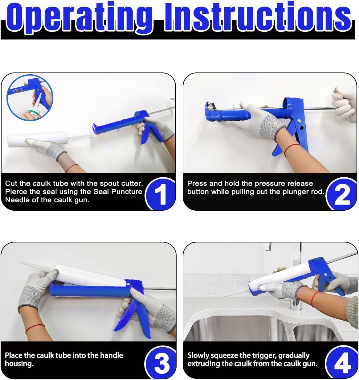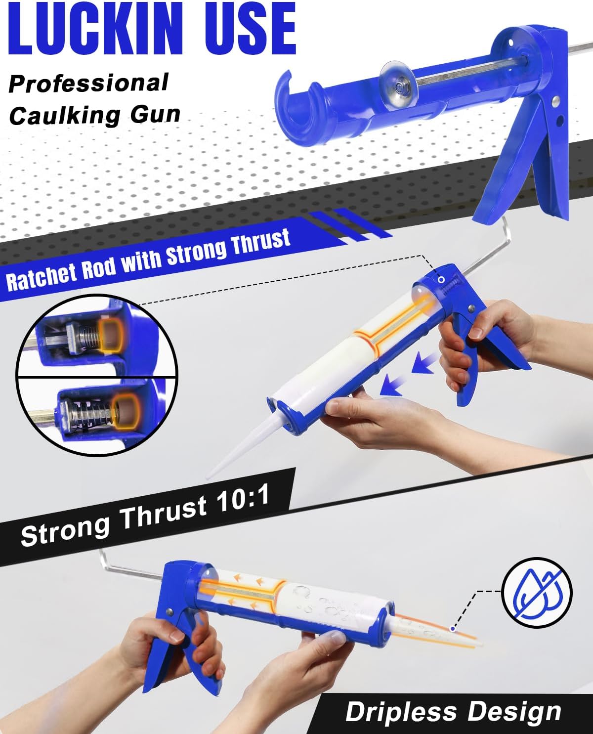 Versatile Application: Our professional Caulking Gun is designed to excel in various scenarios. Whether you're sealing gaps around windows, filling cracks in bathrooms, or applying sealant outdoors, this tool is your all-in-one solution