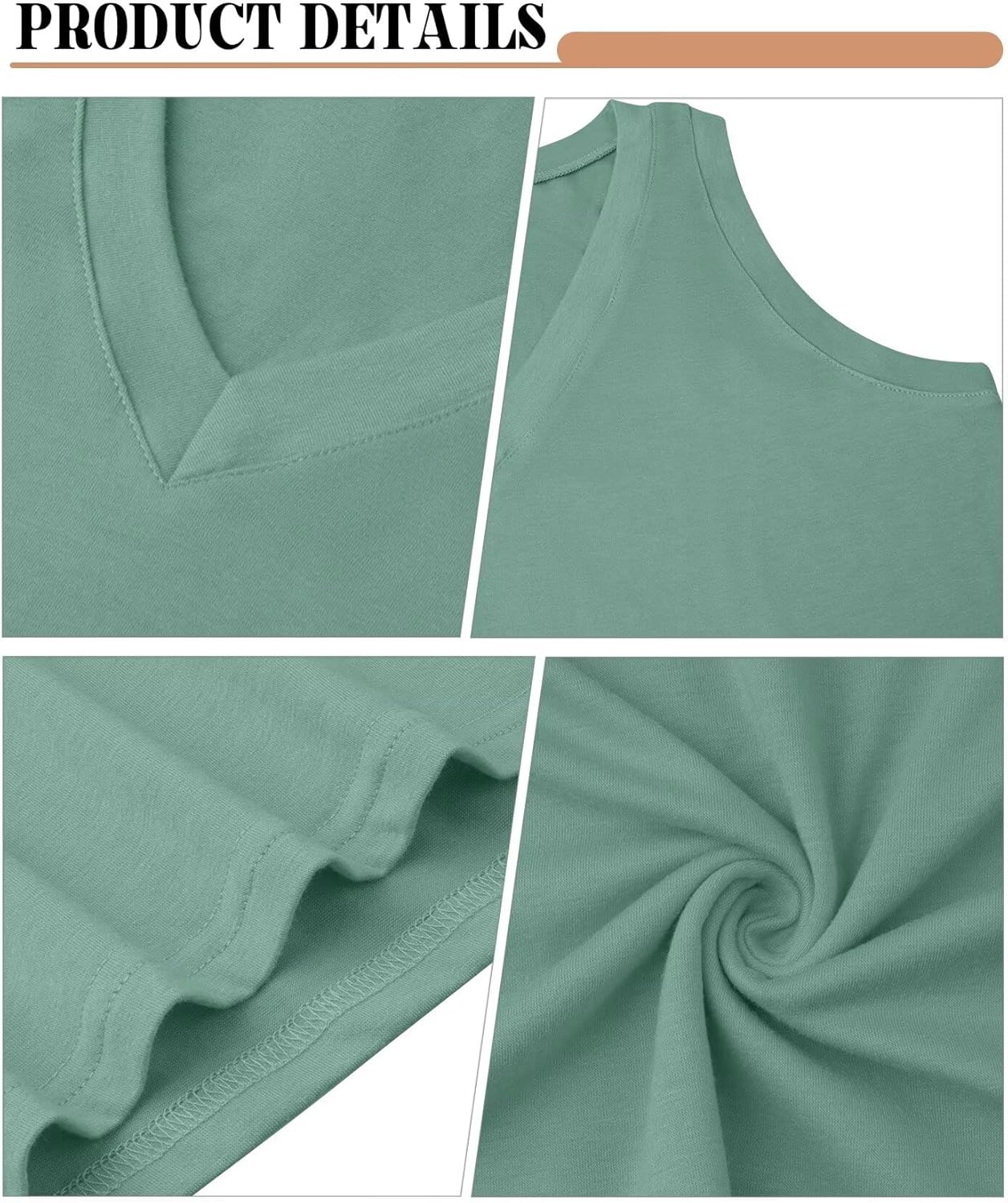 Features:Womens fashion summer tops 2025,Deep V Neck,Sleeveless Tank Tops,Solid Color,Loose Fit Casual Sleeveless Flowy Shirts