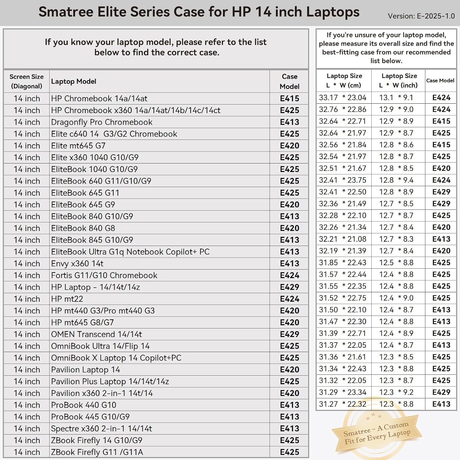 Wide Range of Custom Sizes: Smatree offers nearly 20 tailored sleeve options for HP laptops and many more for brands like Lenovo, ASUS, DELL, MSI, Samsung, Microsoft, Apple, Acer, Razer and others. Our sleeves are precisely crafted to match the dimensions of your laptop, providing a perfect fit that generic cases can’t achieve