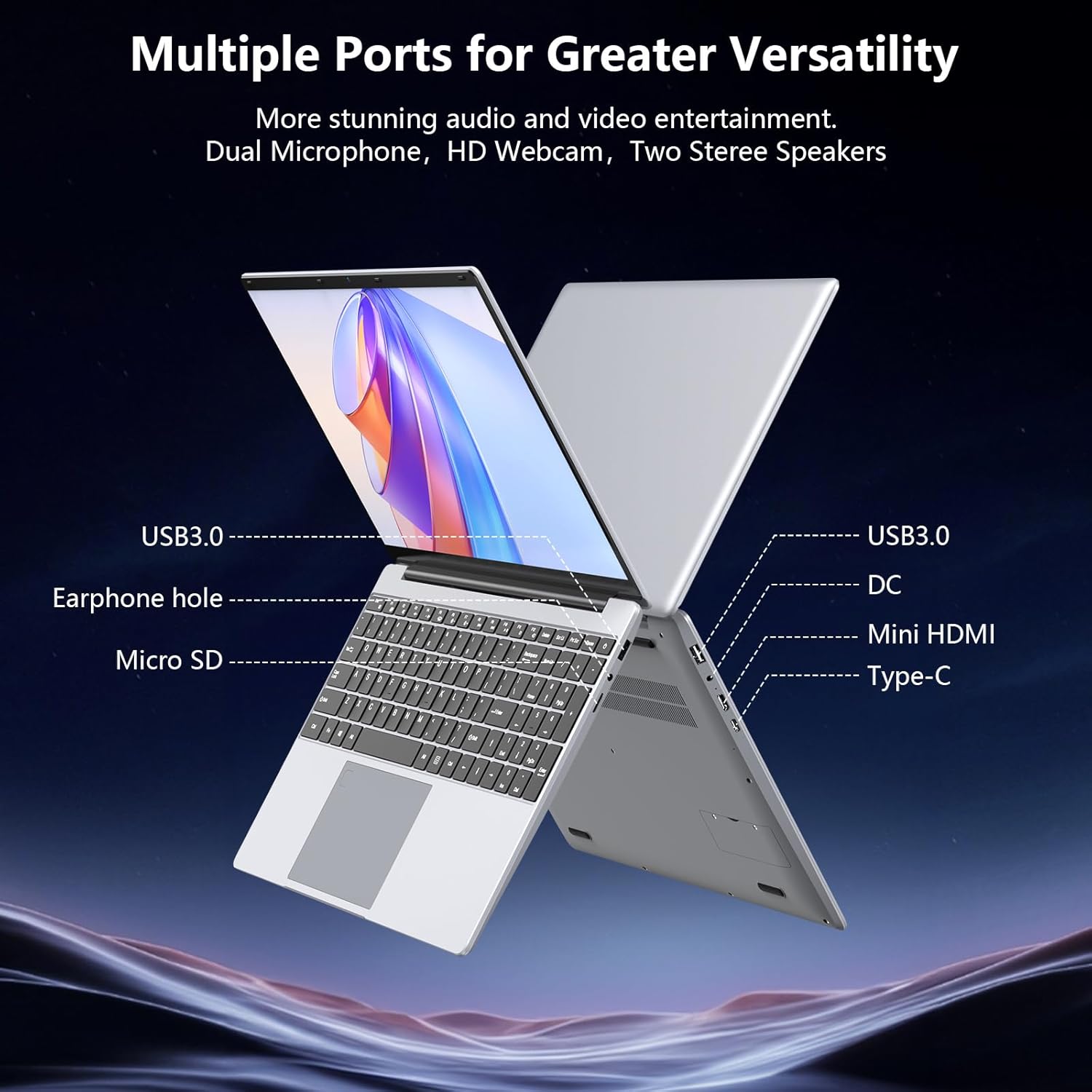 【Versatile Connectivity】—— Stay connected with a variety of ports, including a USB-A 3.0 interface, Full-Featured Type-C,mini HDMI, and a TF card slot that supports up to 128GB. The laptop also features WiFi5 for fast internet connections and Bluetooth 4.2 for seamless wireless device connectivity.