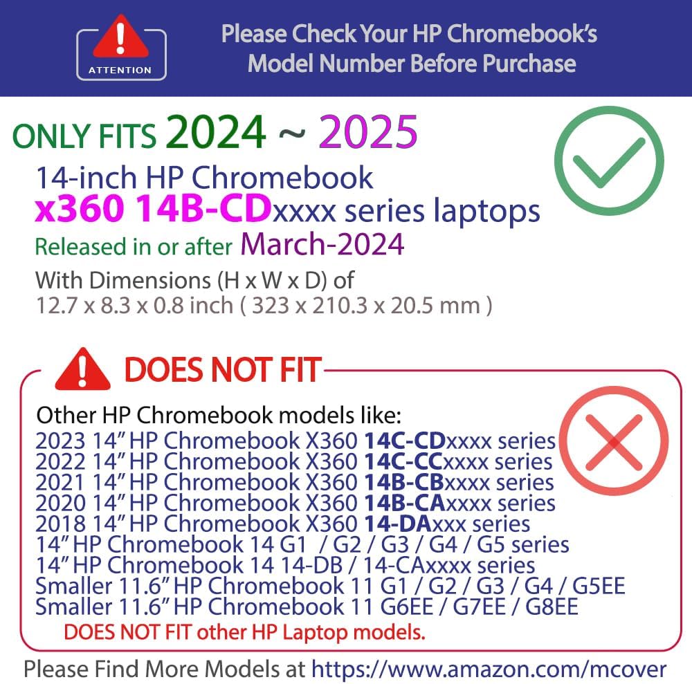 Designed to perfectly fit the 14" HP Chromebook x360 14B-CD0000 series Notebook Computer with dimension of 12.7 x 8.3 x 0.8 inch ( 323 x 210.3 x 20.5 mm )