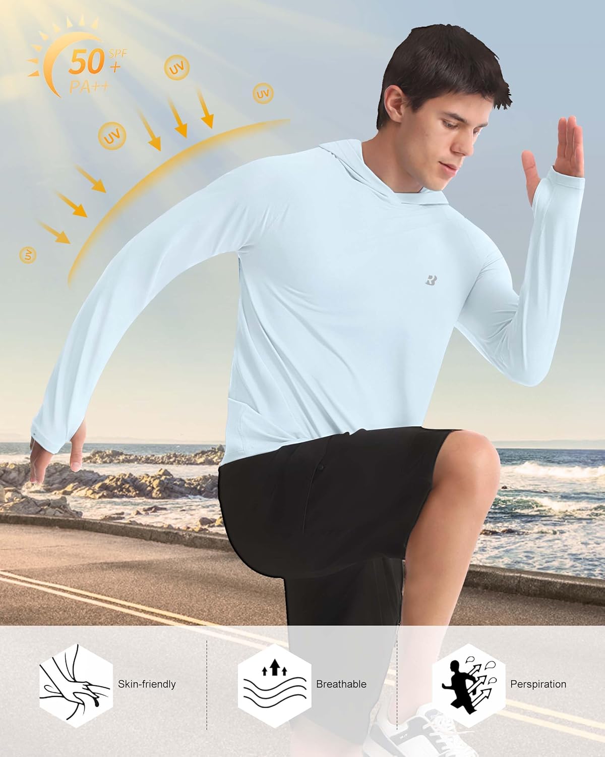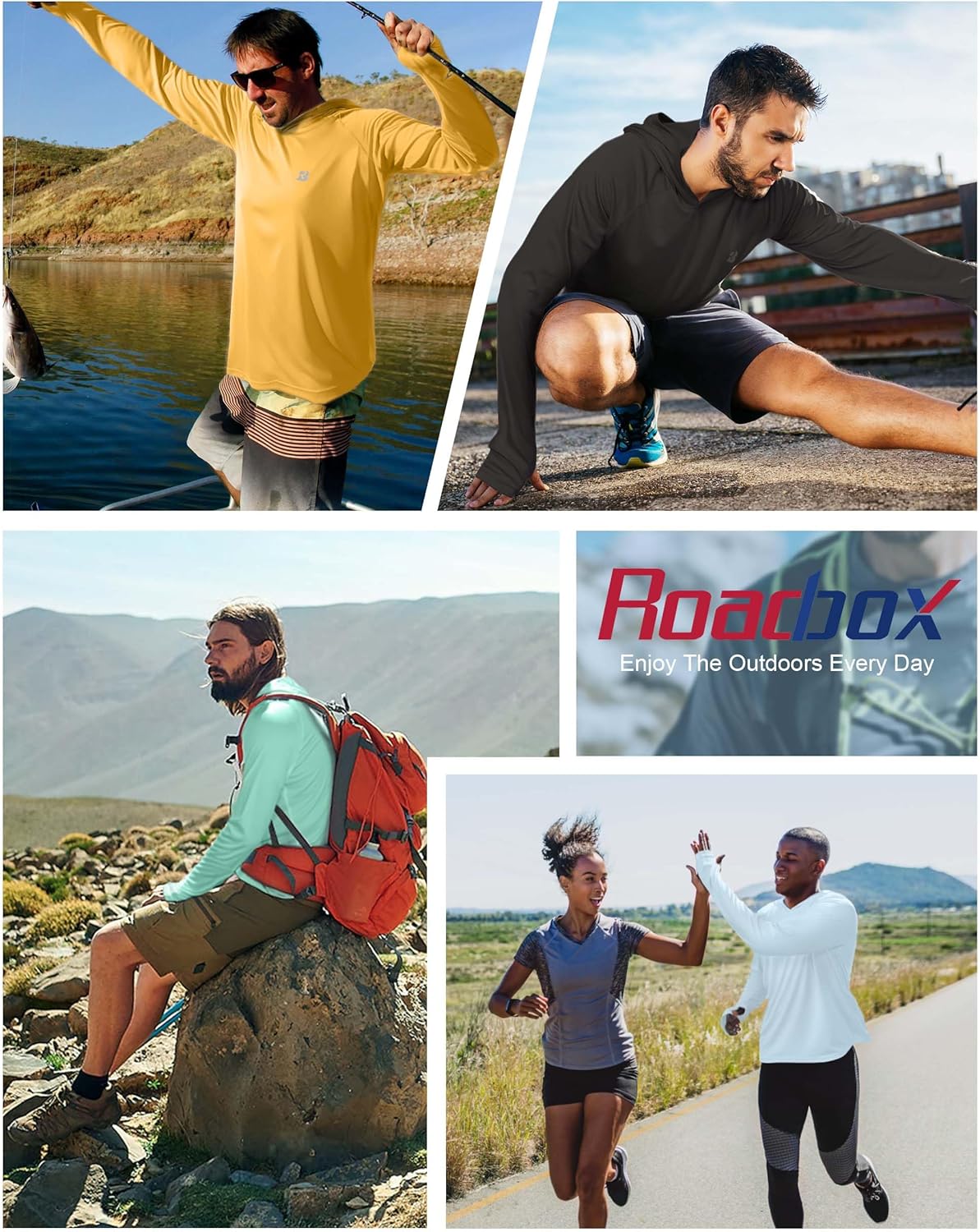 Roadbox UPF 50+ Fishing Shirts for Men, Long Sleeve UV Protection Sun Hoodie, Swim Rash Guard for Hiking Running Workout