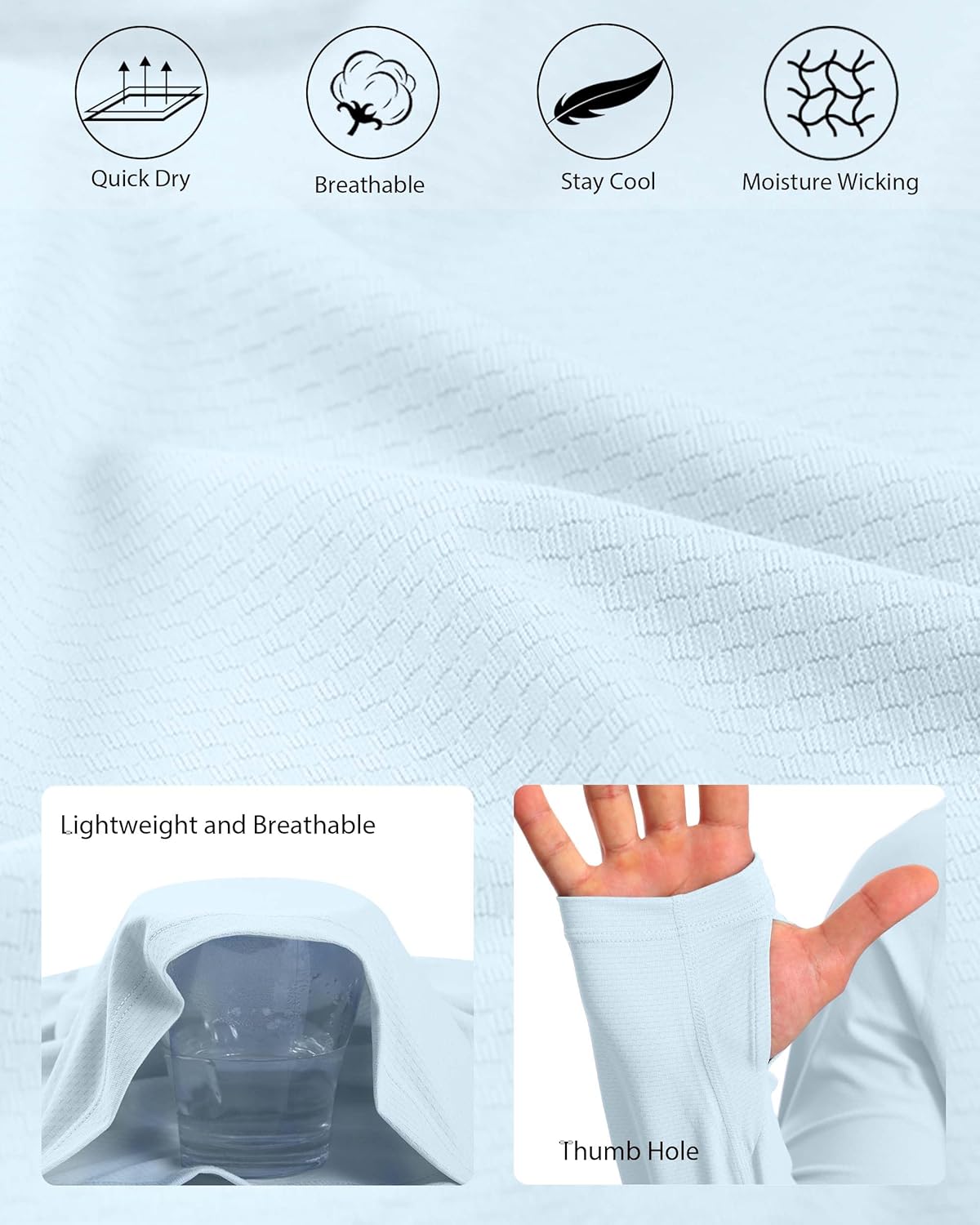 UV Protection: Our long sleeve sun shirts feature cutting-edge UPF 50+ technology, effectively blocking UVA and UVB rays to ensure robust sun protection during your outdoor adventures