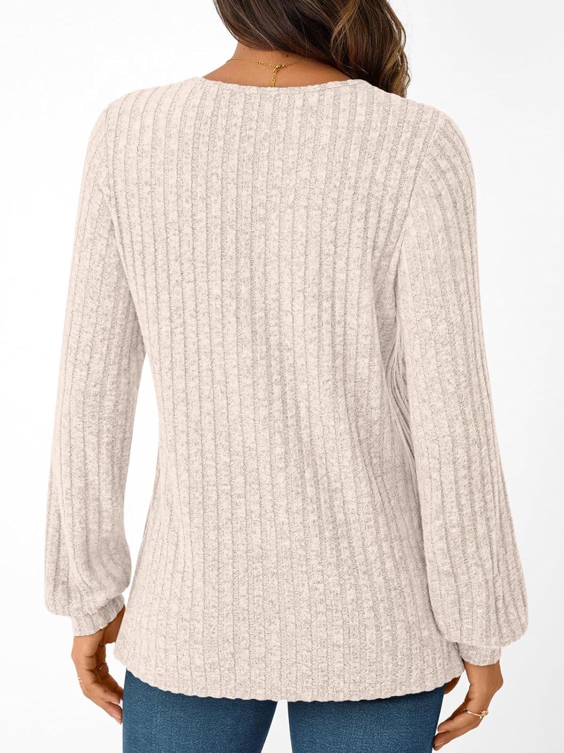 Designs: Featuring a flattering V-neck and bubble sleeves, this tunic blouse offer a modern and versatile look