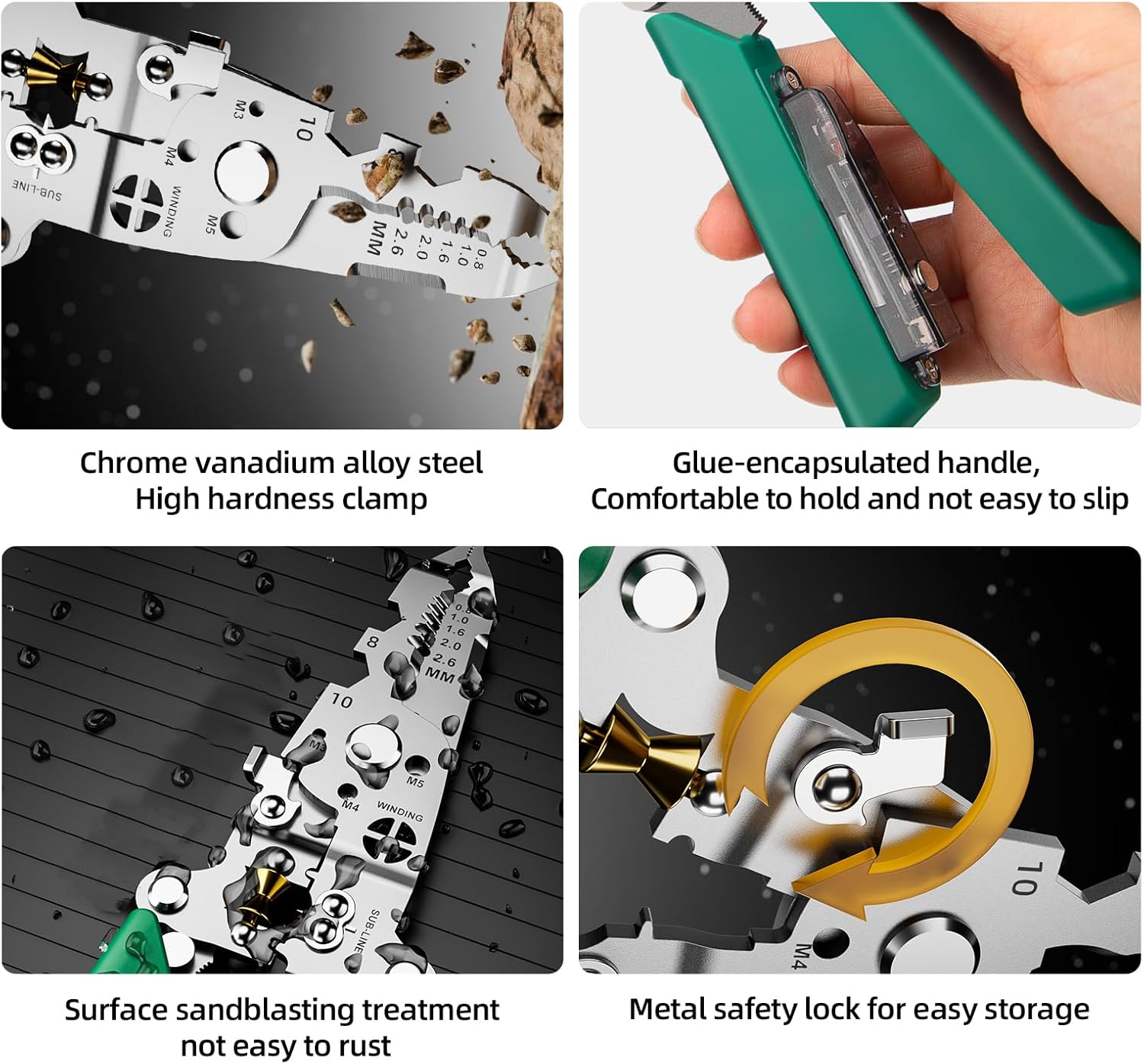 Ergonomic and Portable Design: Designed with a foldable and lightweight structure, the wire stripper is easy to carry and store. The ergonomic handle reduces hand fatigue, making it comfortable to use for extended periods