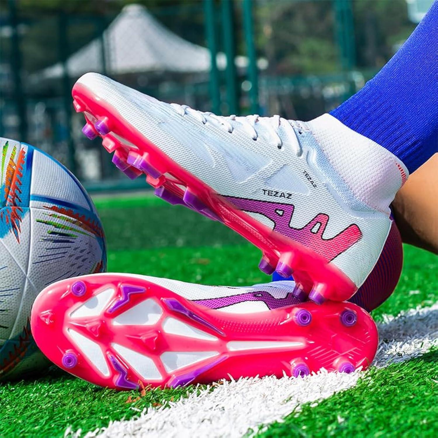 The soccer cleat boast PU upper that is both soft breathable and resistant to folding, The soccer boots with high elastic shock absorption, making them perfect for a variety of playing fields.