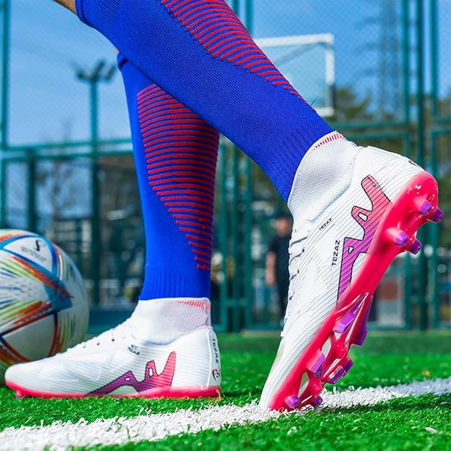 The soccer sneakers boots designed with a knitted sock and high-top elastic shoe mouth, these shoes provide ample support for the ankle, reducing the risk of injury during sports activities and improving both safety and comfort.