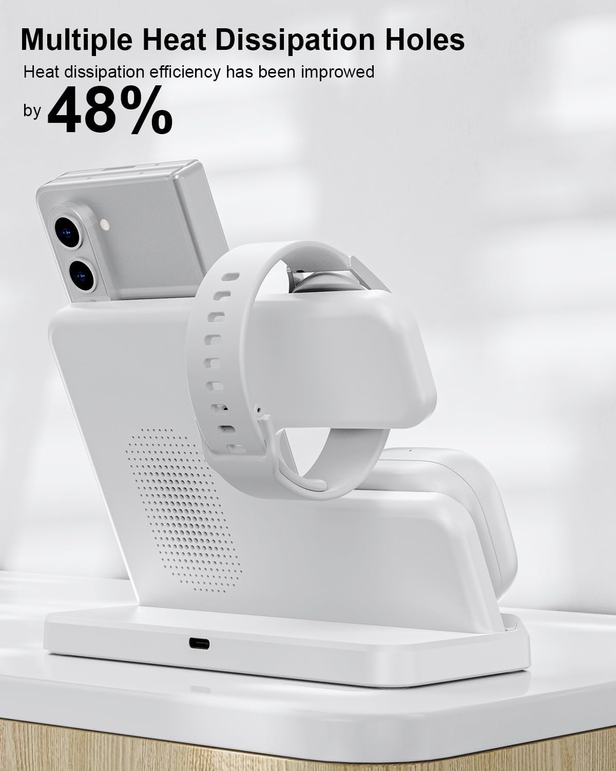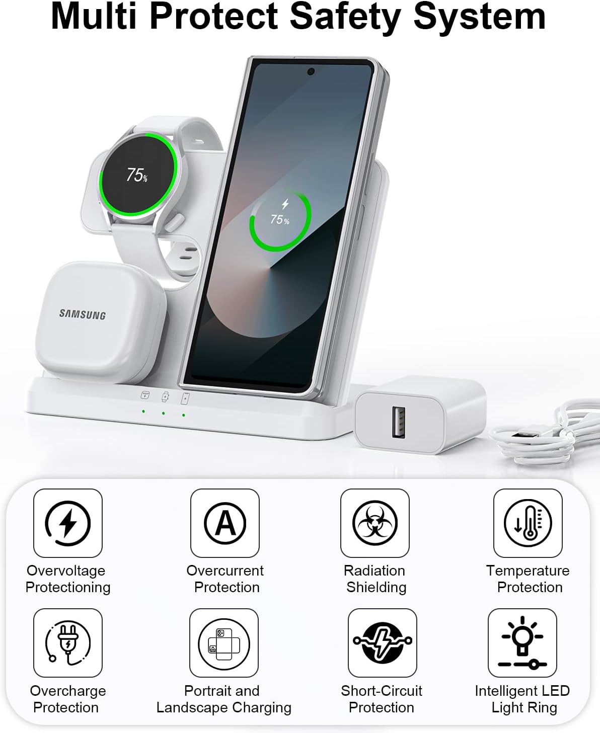 Safety Certification: The Indigotech Samsung Wireless Charging Station is UL and FCC certified in the US, exceeding industry safety standards. Equipped with over-voltage, over-current, overload protection, foreign object detection, and 48% enhanced cooling efficiency, it ensures truly safe charging for your $1,000+ Samsung devices
