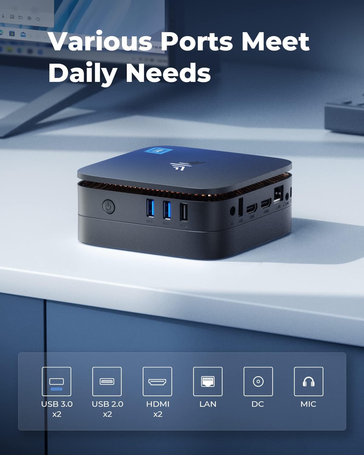 【Perfect multi functional interface】KAMRUI Mini PC multi functional interface with 1 x DC, USB3.2 Gen2 Type-A Port×2, USB2.0 Type-A Port×2, 1 x RJ45 Gigabit Ethernet port, 2 x HDMI ports, 1 x audio input/output.Make your office and other uses barrier-free, support the use of multiple devices, and as servers, monitoring equipment, office equipment, monitors, projectors and other multimedia equipment and commercial equipment.