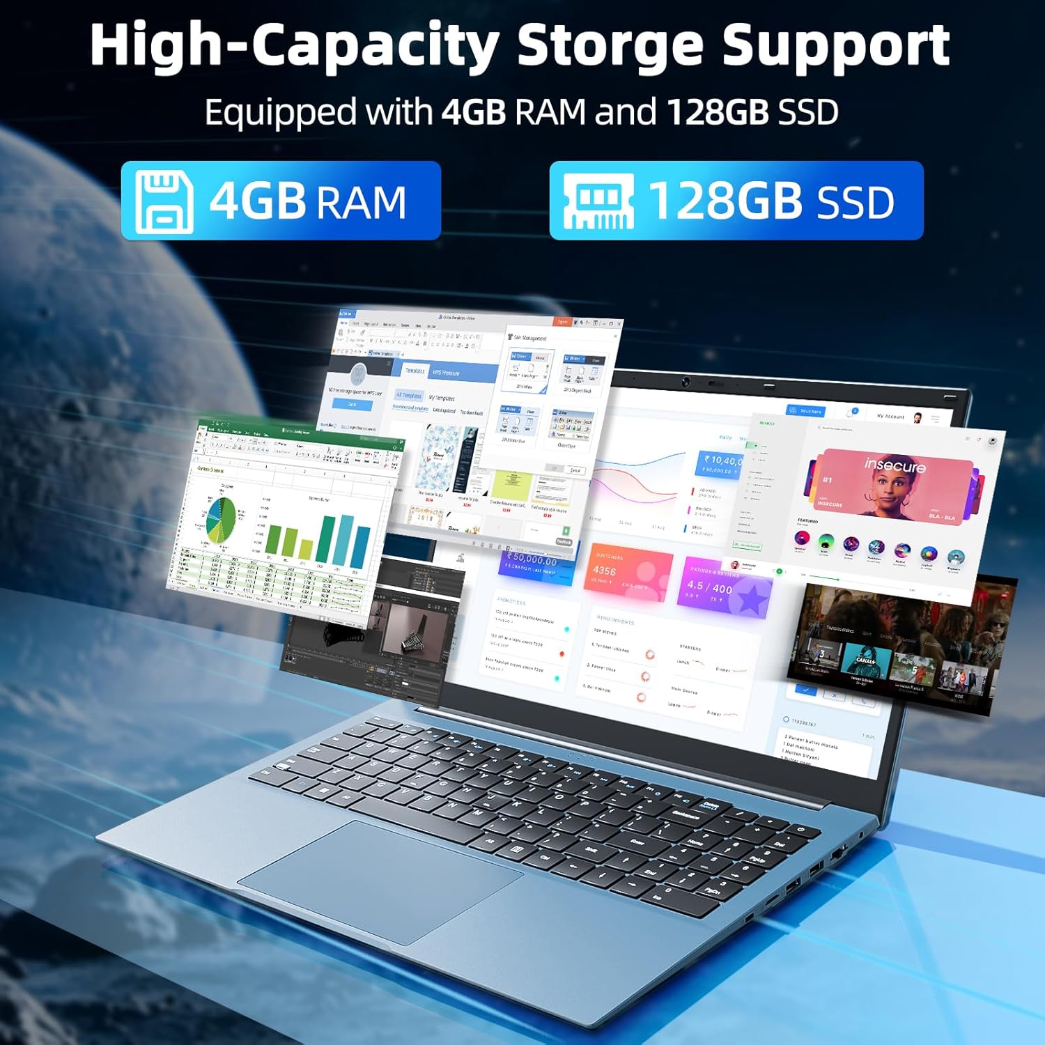 Efficient Performance: Equipped with 4GB high-speed DDR4 memory, 128GB SSD storage and faster, smoother and energy-efficient performance, this laptop can easily handle complex tasks. Supports the extension of the TF card of 1TB and the 512 GB SSD can be replaced with a maximum SSD of 1 TB, provides ample storage space for your documents, media files, and other data