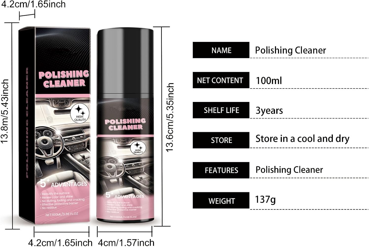 【High Safety】Spray with balanced Ph value can ensure that it will not form stripe luster after use and enhance the overall appearance effect. Non-abrasive, so as to protect the delicate and sensitive material base and not scratch or damage the fragile interior materials