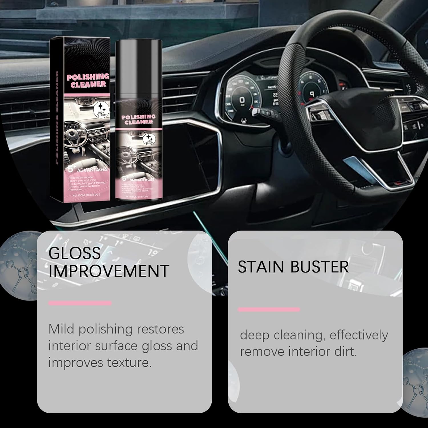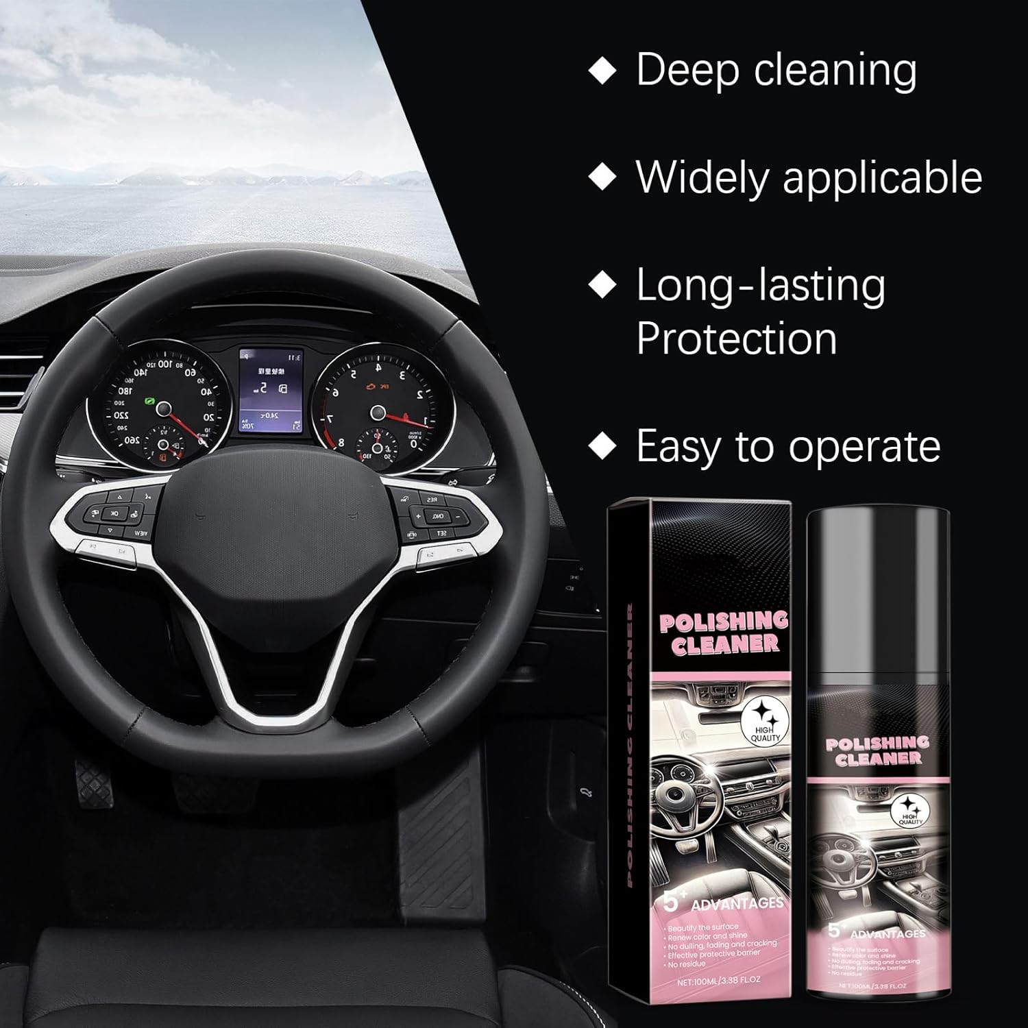 【3-Second Stain Removal】Our advanced polishing formula penetrates grease & grime instantly (tested on 500+ surfaces). Forms 30-day UV-resistant shield to prevent fading on dashboards, door panels, and consoles. Safe for -20°F to 150°F environments
