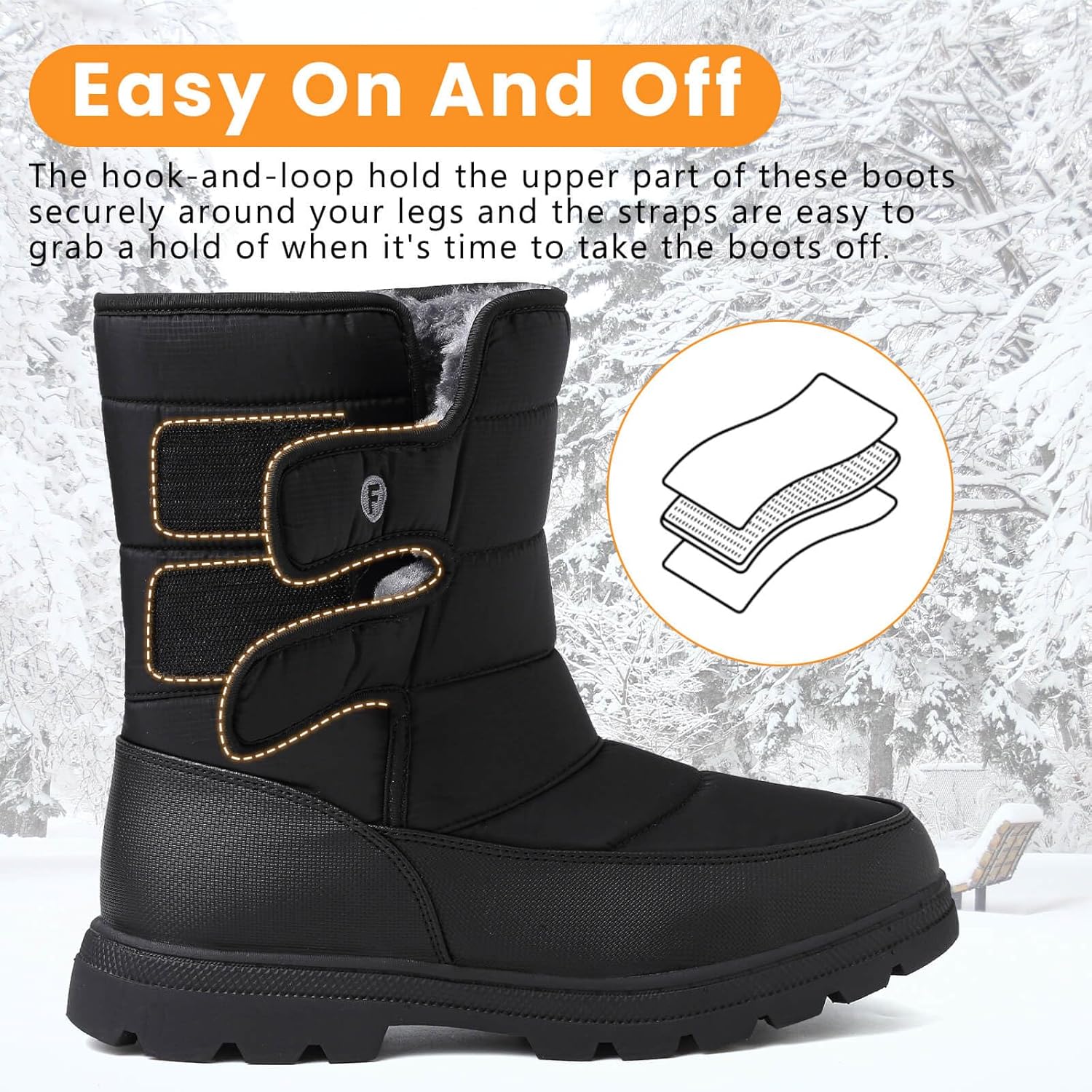 Easy On & Off with Secure Fit:These womens snow boots feature adjustable hook-and-loop straps for a snug, customized fit and quick on/off — ideal for both men and women on the move.