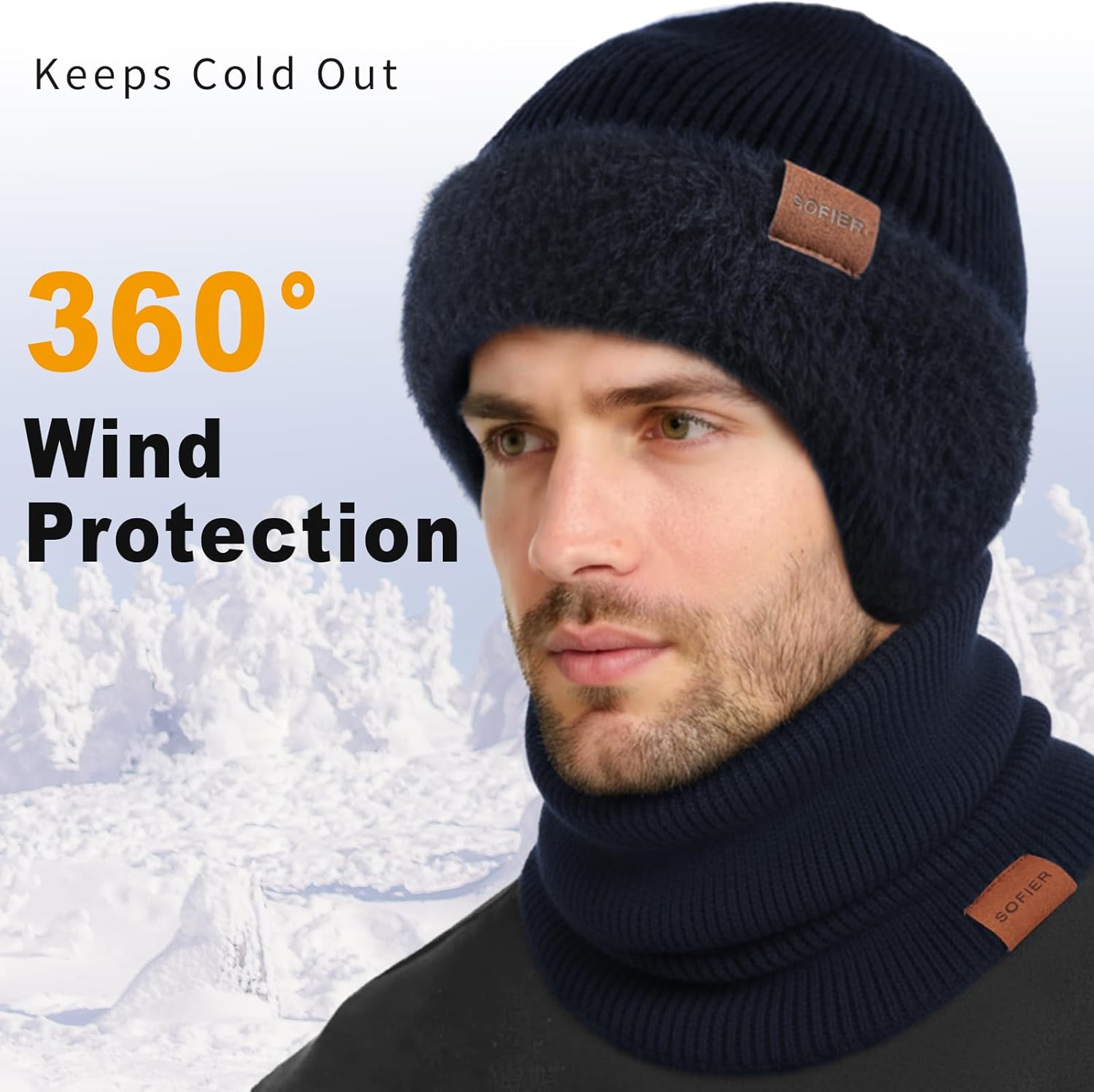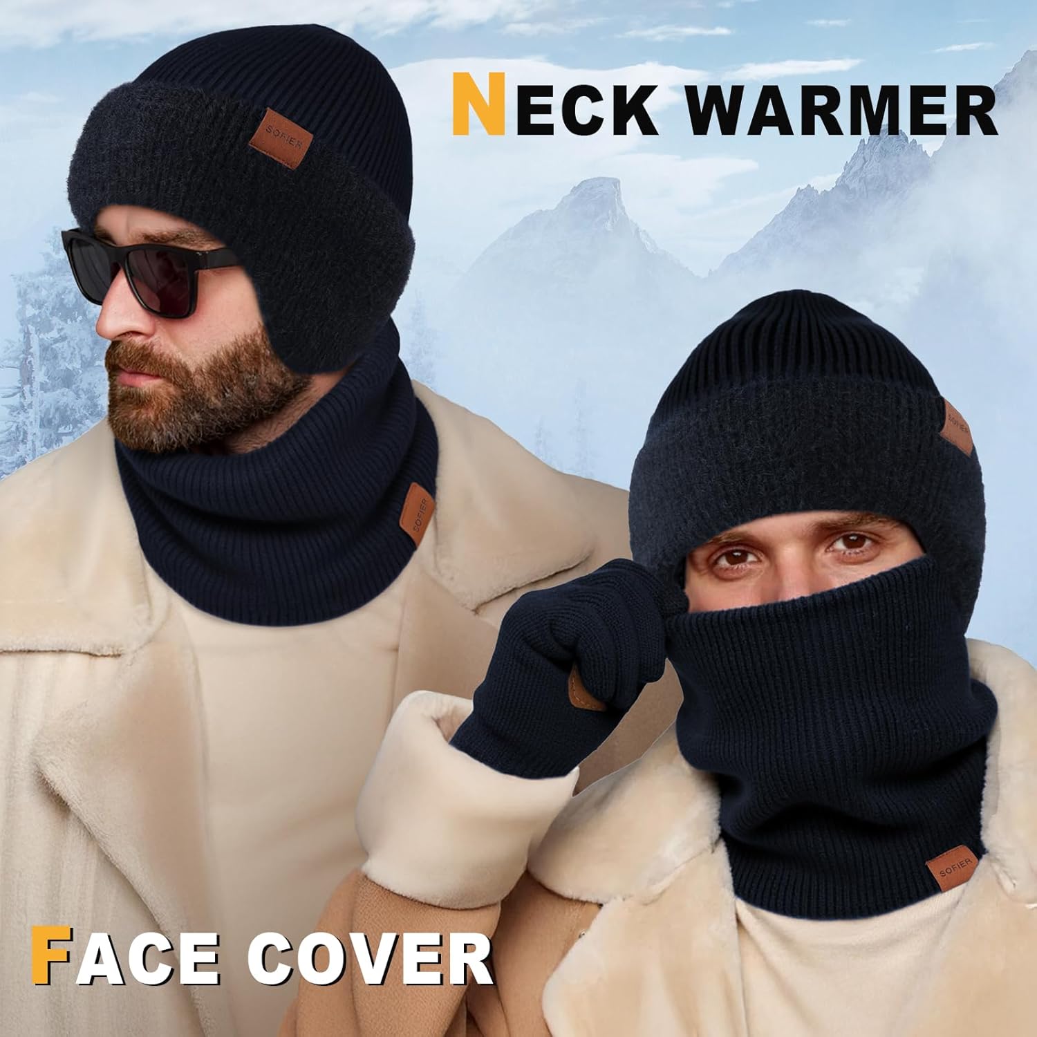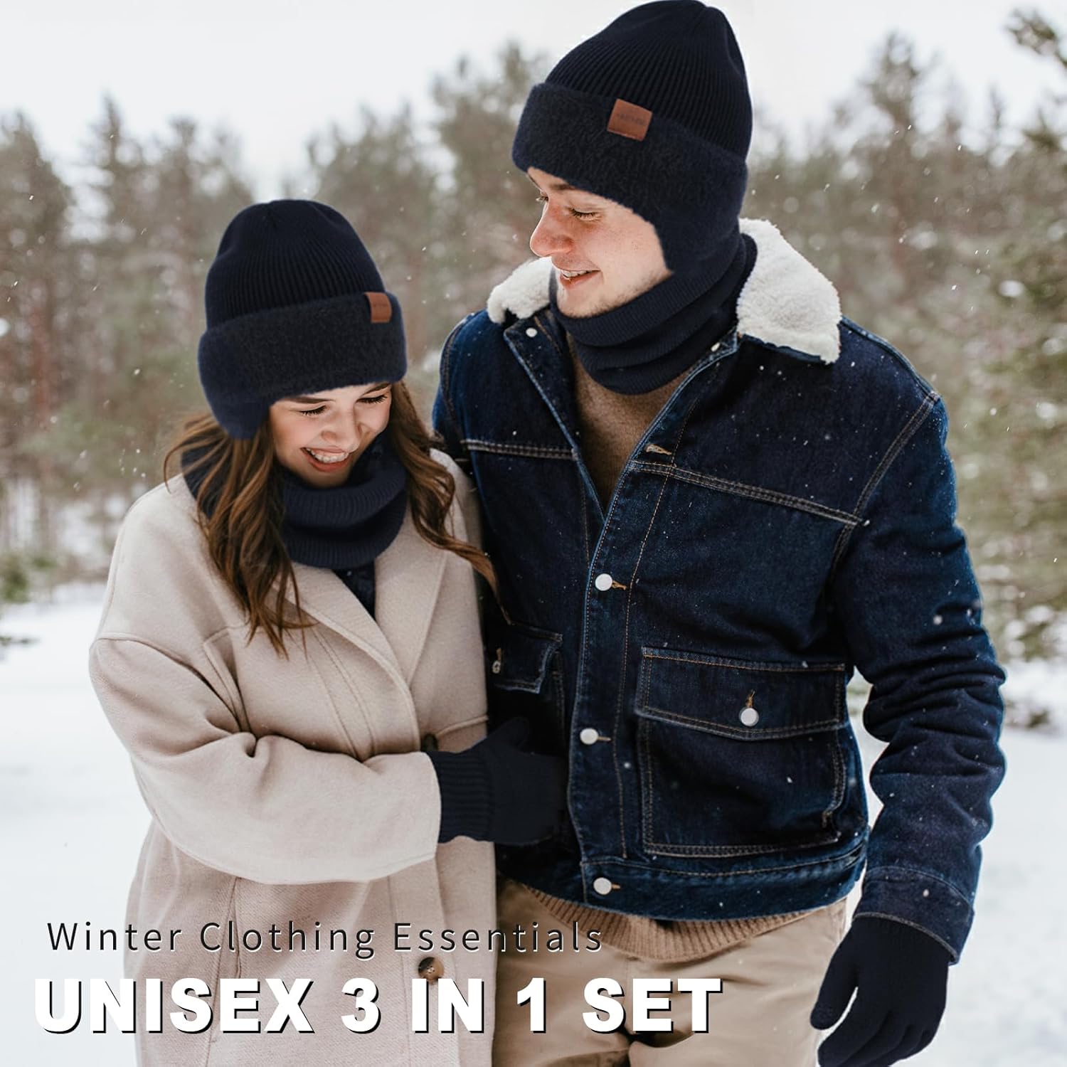 Super Value Set:Knit Fleece Lined Beanie Hat with Earflap,Neck Warmer Scarf & Touchscreen Gloves All-in-One Value Set – Get all your winter essentials in one go! This ultimate 3-in-1 bundle makes a perfect, heartwarming Christmas gift to keep your loved ones cozy during the cold winter.