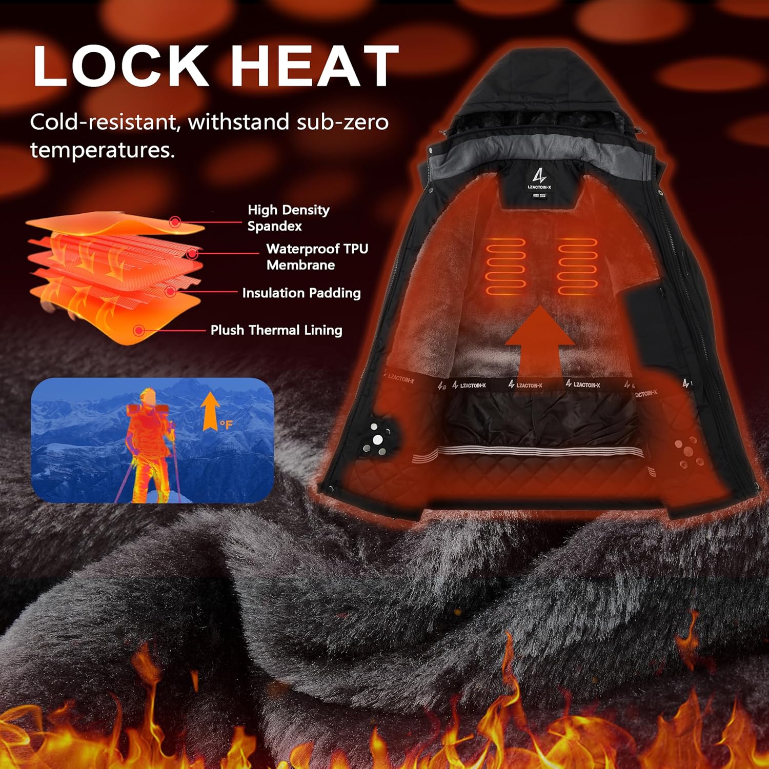 【HEAT-LOCKING & BREATHABLE】: This ski jacket features a professional 3-layer thermal structure: outer shell blocks wind, thickened cotton filling traps locks warmth, plush fleece lining adds extra insulation. Keeps you warm in 40℉ to -15℉, stays breathable to avoid activity-related stuffiness, and feels non-bulky—ideal for harsh winter winds.