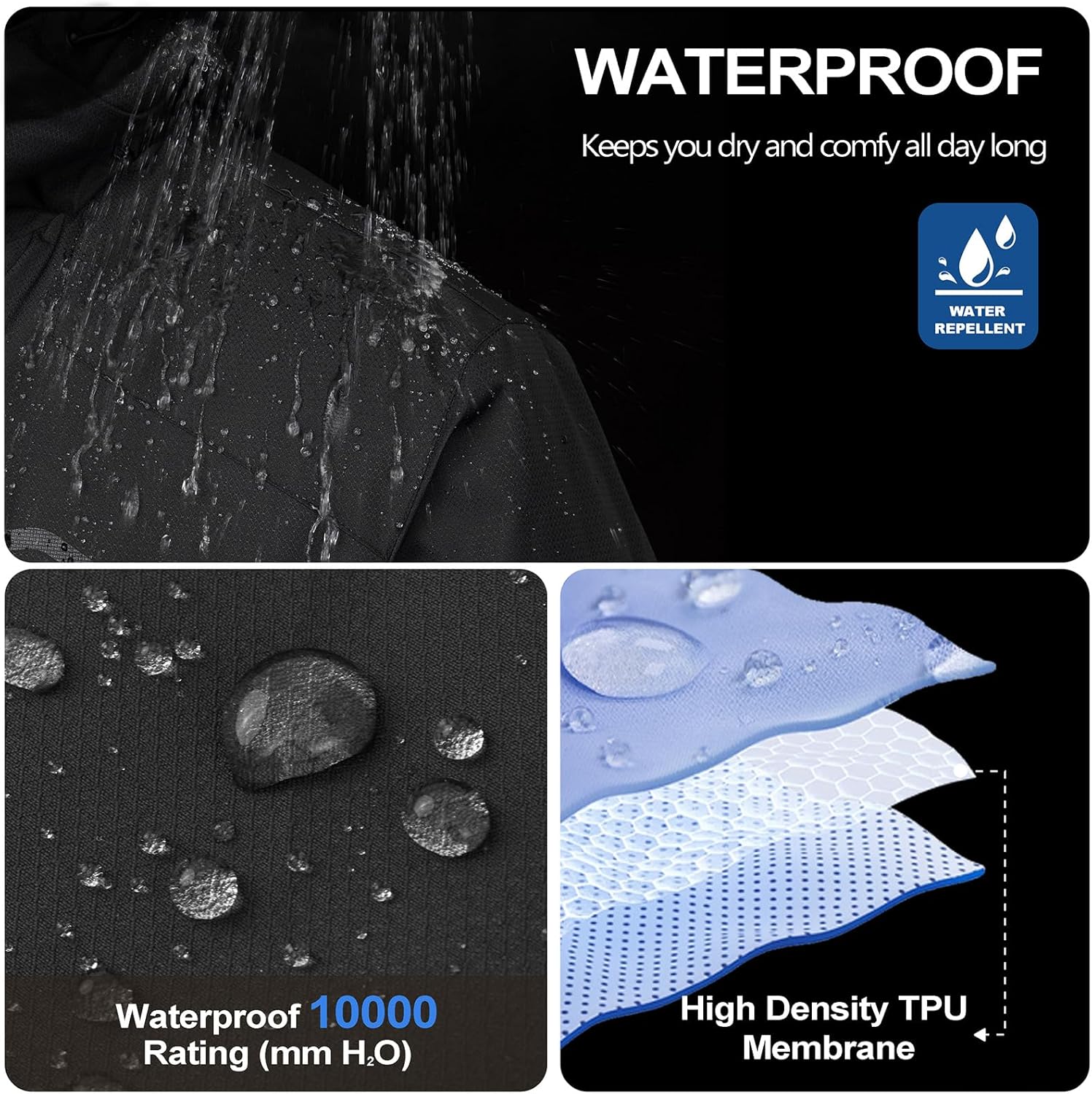 【Waterproof & Snowproof】: Men's skiing jacket has a professional waterproof outer shell (10000mm/H2O), plus a hydrophobic coating, reinforced stitching and waterproof zippers. It repels heavy snow, rain and fog, keeping you dry and comfy for skiing, hiking and other cold-weather outdoor activities.