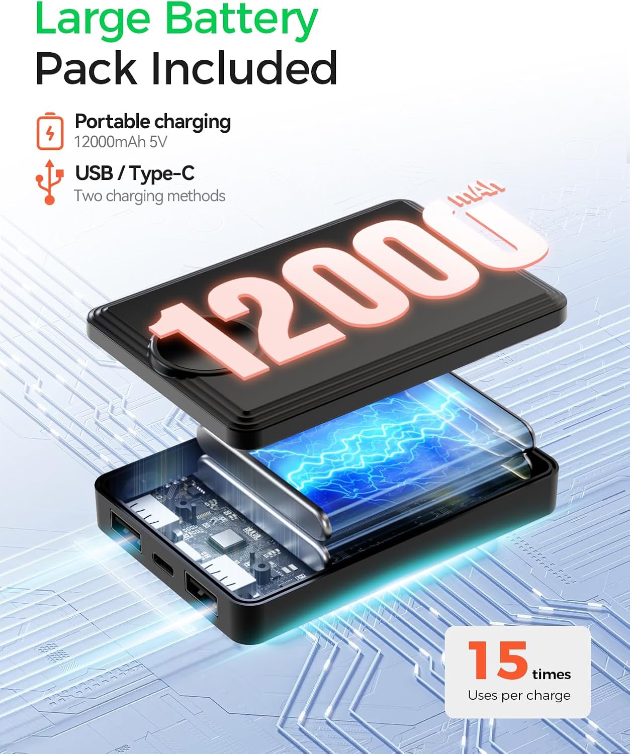 Long-Lasting Power with 12000mAh Battery: Comes with a 5V 12000mAh digital display power bank, providing up to 5–11 hours of continuous heating (depending on heat level). The LED screen shows remaining battery life at a glance. Package includes: Heated Vest ×1, 12000mAh Power Bank ×1, 30cm Charging Cable ×1, User Manual ×1.