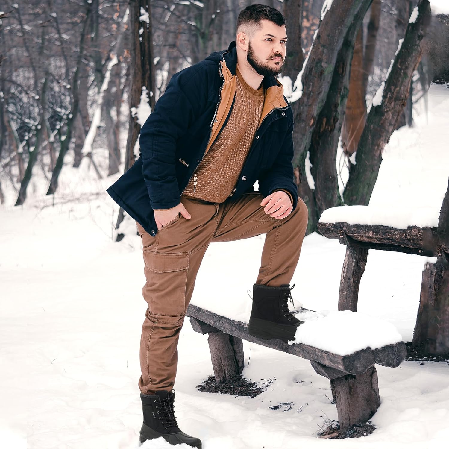 Waterproof and Slip-Resistant: The winter boots for men have seam-sealed construction. The TPR shell protects against water and wind. A textured, slip-resistant outsole ensures excellent grip and durability, preventing slips in wet conditions