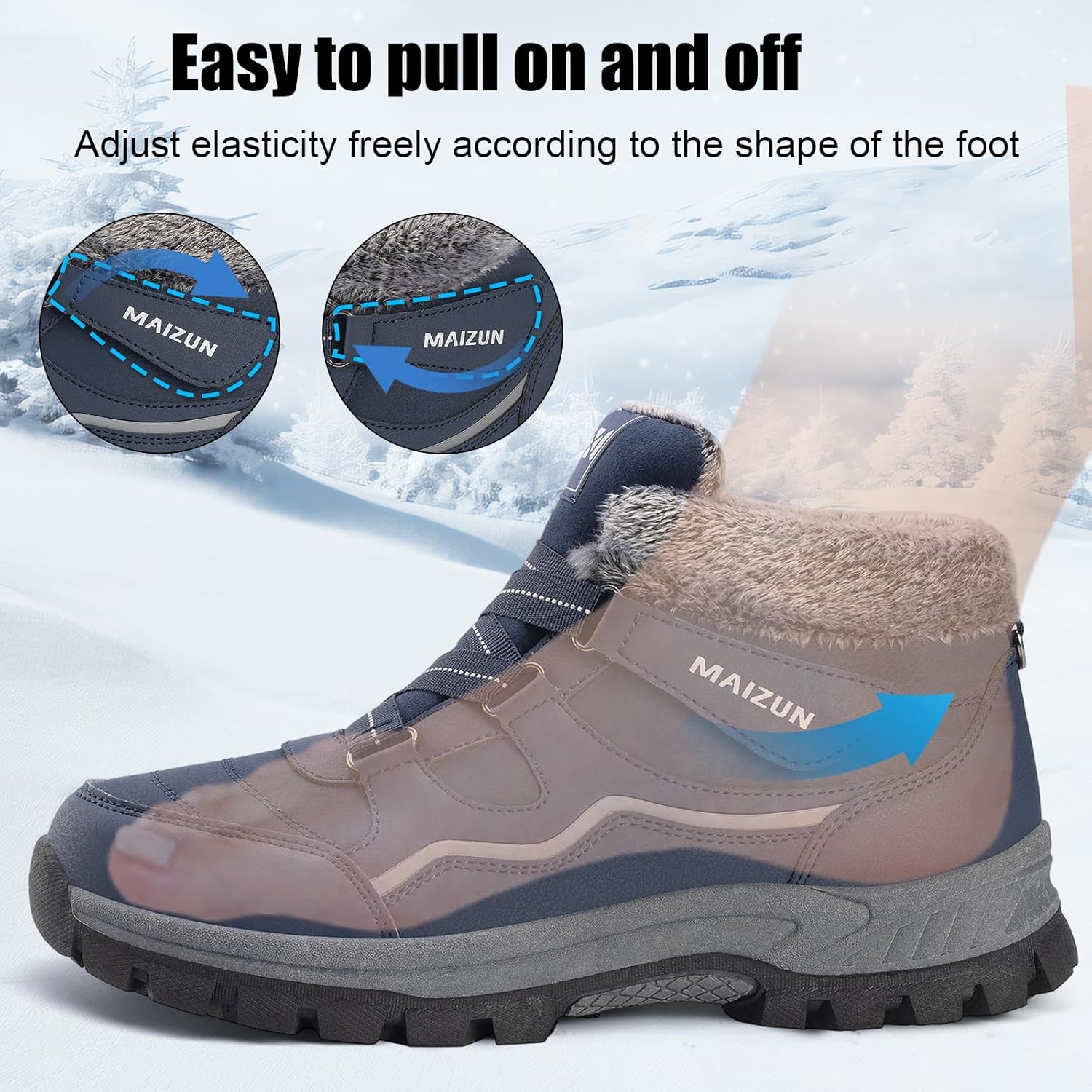 LINING for COMFORT: Winter snow boots for Men featured thicken fur lining that keep your feet warm and cozy in clod weather. The collar at the top is designed to wrap your ankle and enhance warmth, stopping the moisture and cold away
