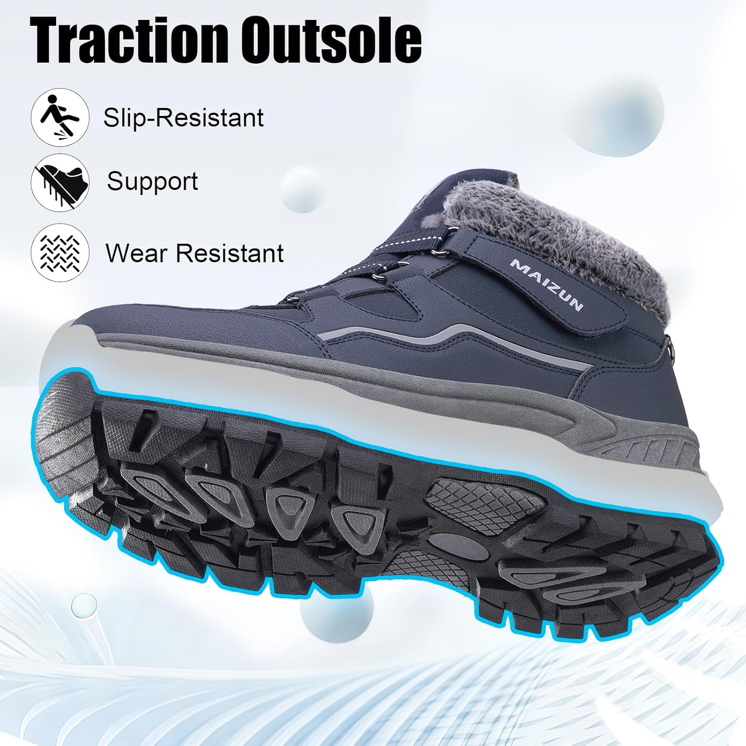 ANTI-SLIP FOR SAFETY: These ankle boots men are equipped with TPR rubber outsole that is anti-slip, great traction and reliable sole make it perfect for snowy day. With toe protection mens winter boots has a certain degree of support and let you walk safety and stably in the slippery floor