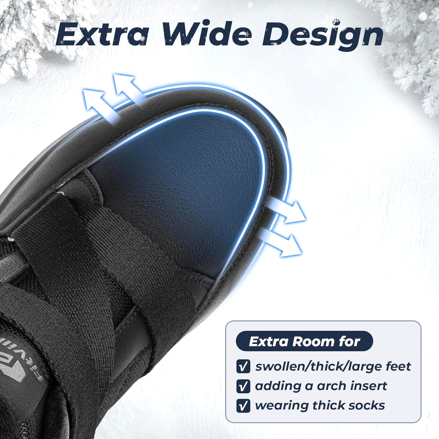 Winter Boots Wide Width: These cozycore winter boots V16 accommodate foot swelling and are well-suited for large, wide, or thick feet, as well as for use with orthotic insoles.