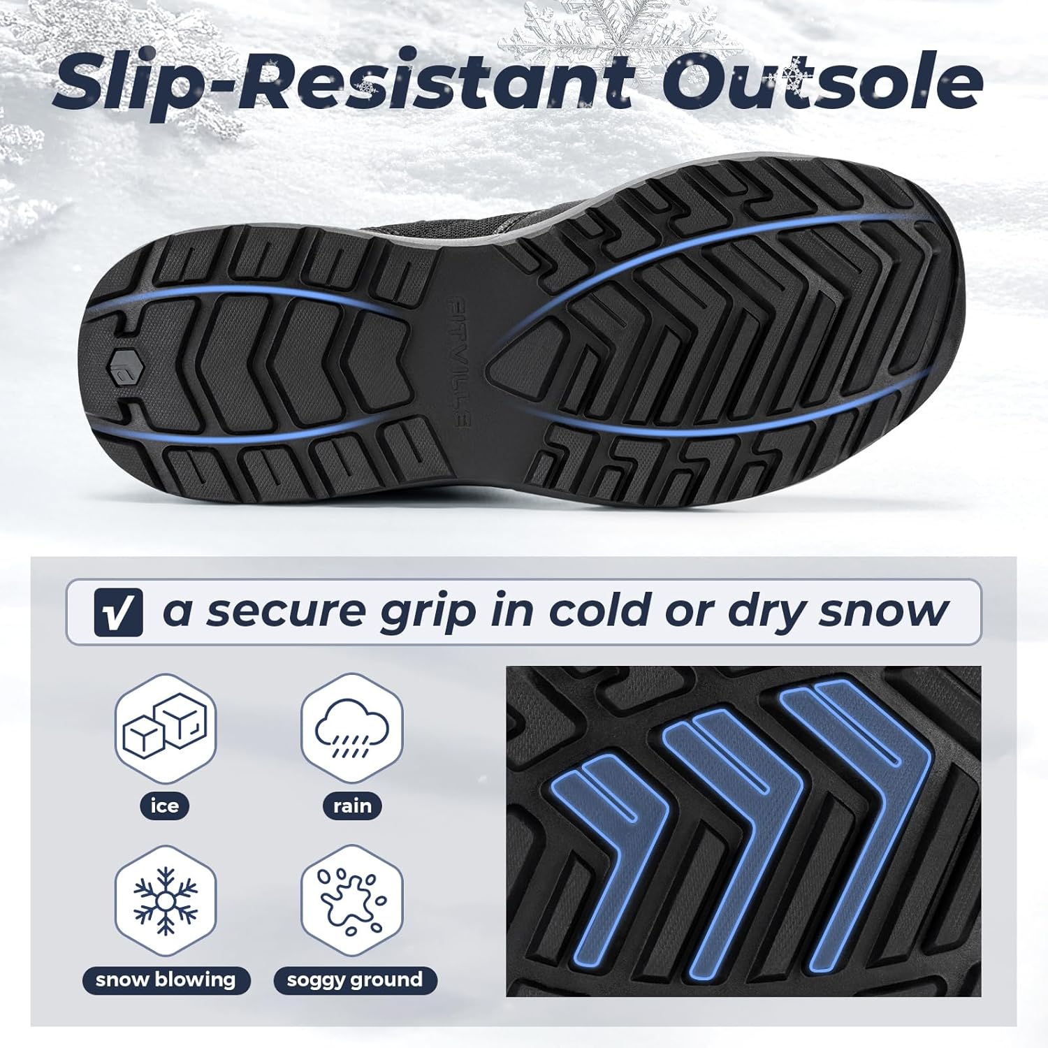 Slip-Resistant Outsole: The rubber outsole ensures stability and traction on various surfaces to prevent accidental slips and falls in winter and snowy weather.