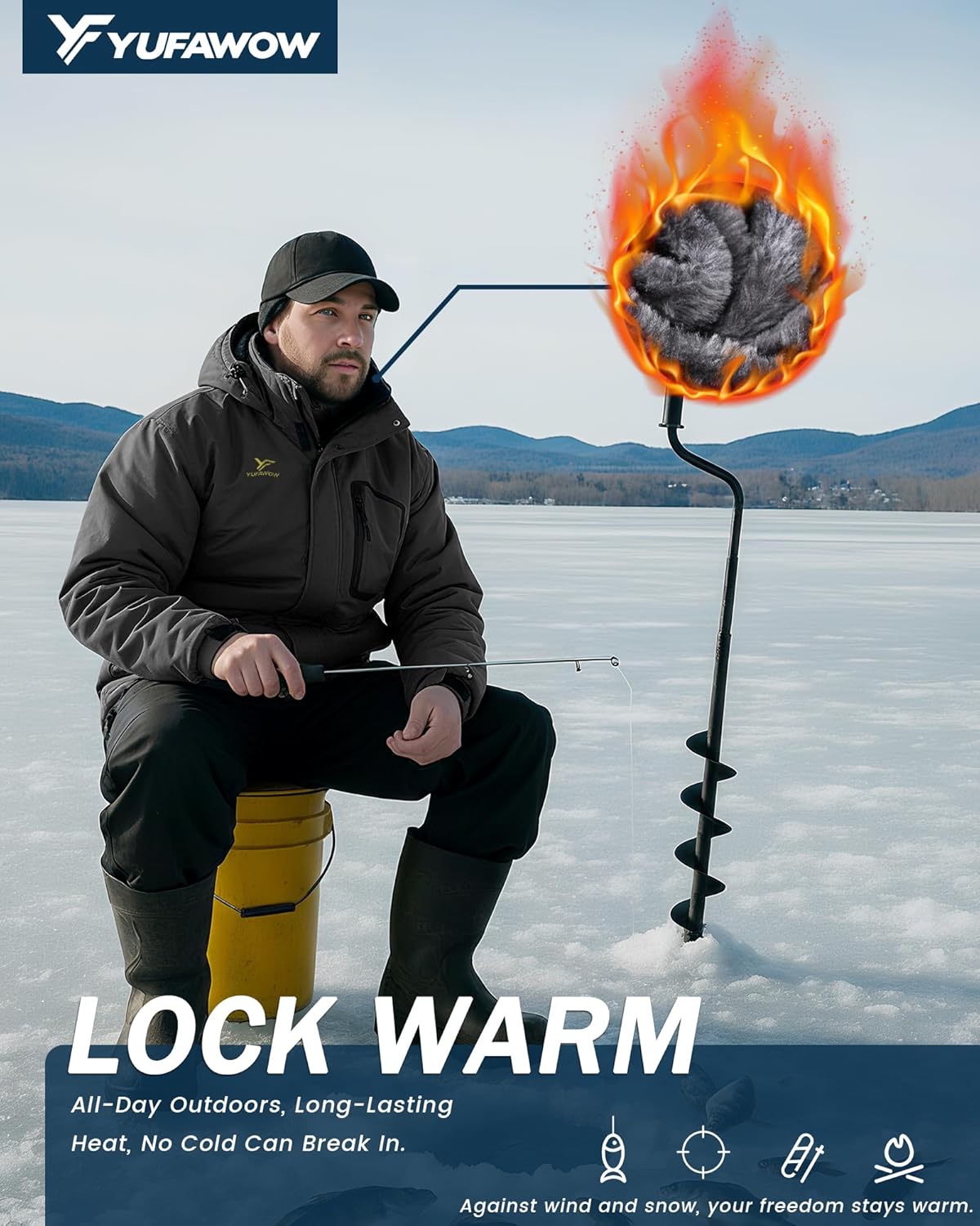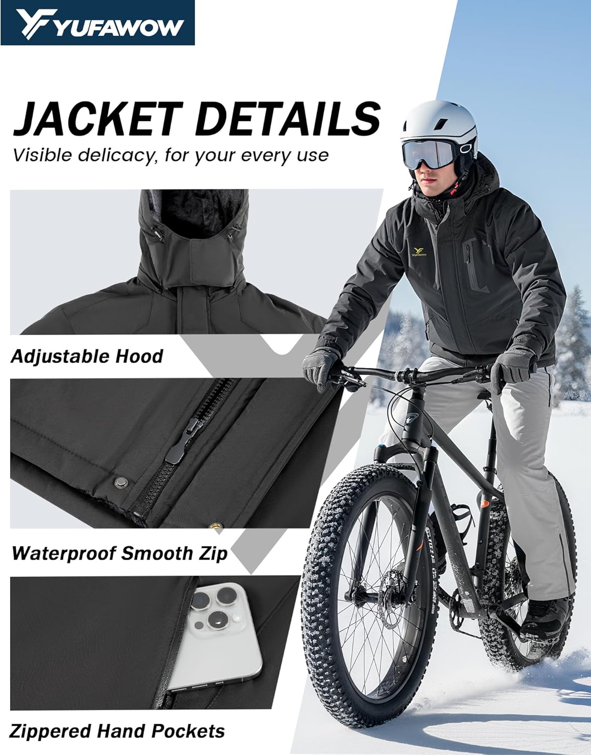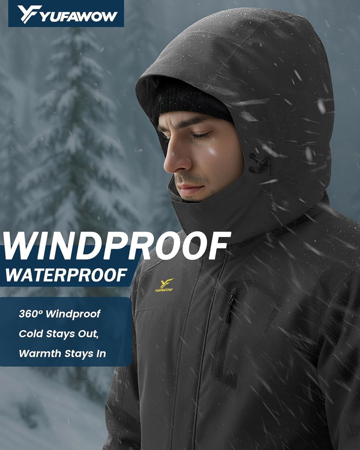 Yufawow Men Winter Jacket Work Coat Waterproof Windbreaker Heavy Softshell Heat Warm Thermal Insulated Ski Snow Snowboard