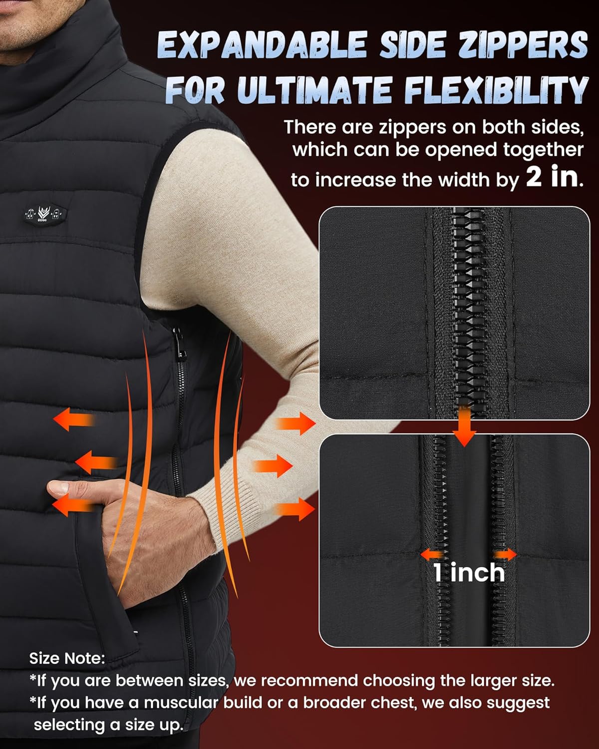 Full-Body Even Warmth & All-Over Heat Wrap - This heated vest Engineered with strategically placed heating panels covering key areas (abdomen, back, shoulder and neck), this heated vest ensures even heat distribution to your key areas. Whether you're working outdoors, hiking, or commuting, the advanced heating system maintains consistent warmth without restricting movement.