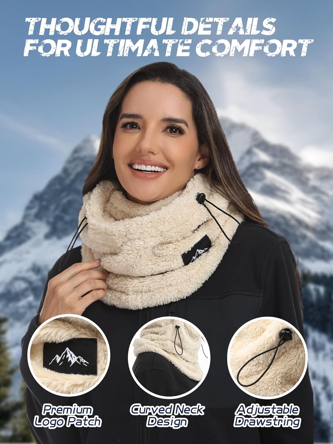 Adjustable Comfort Design: Curved neck design contours naturally. Two drawstrings allow you to adjust coverage easily. The design layers perfectly with winter coats, jackets, and snow outfits.