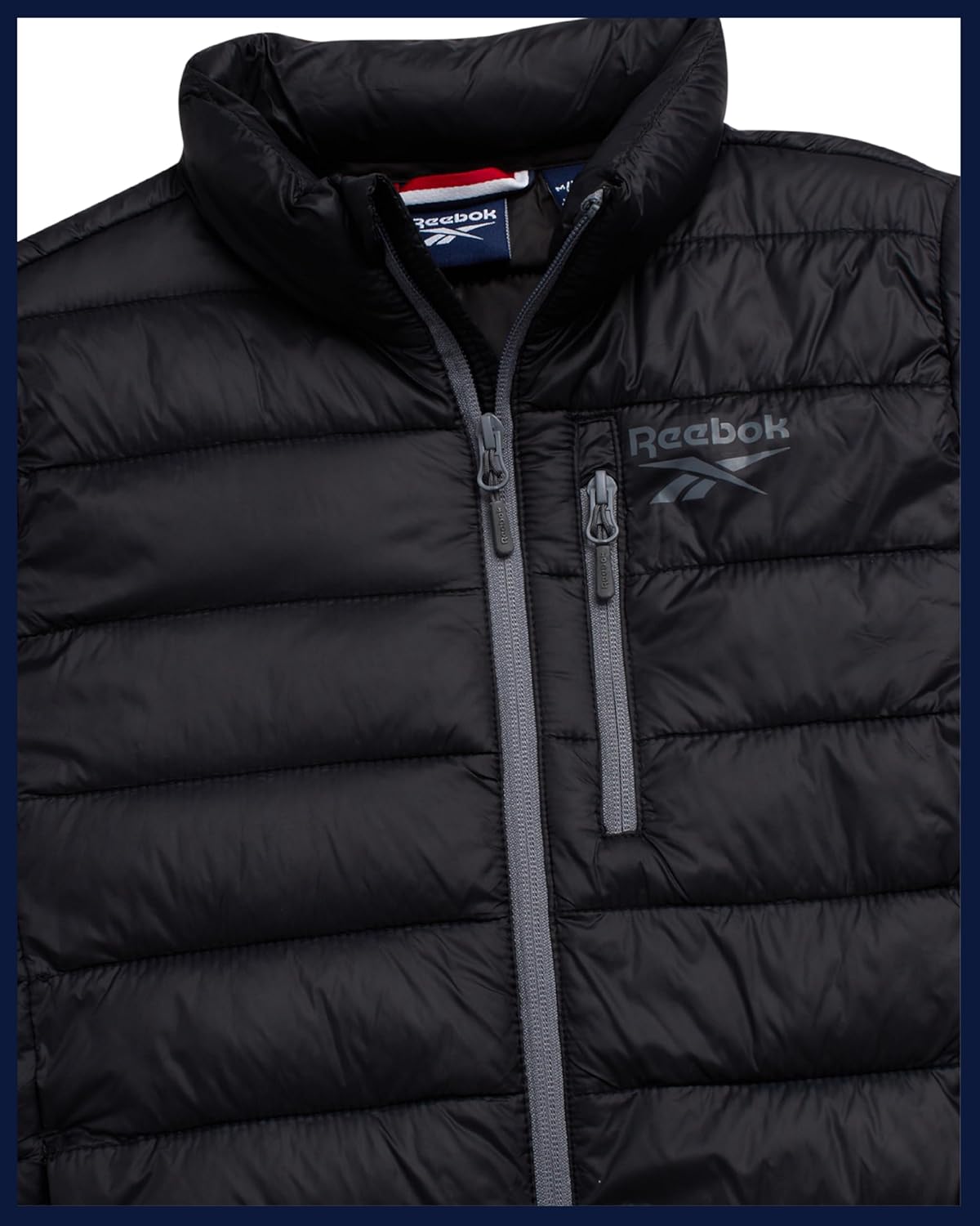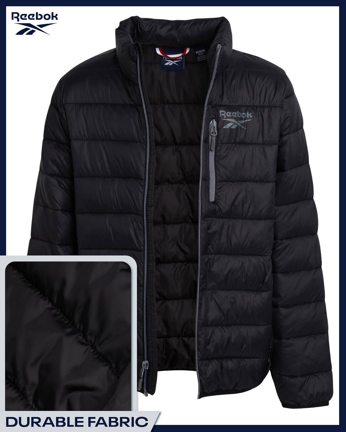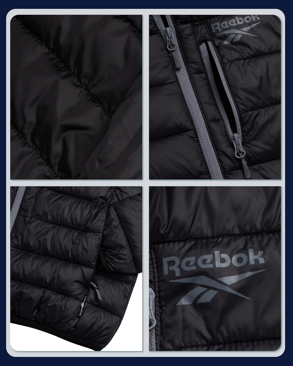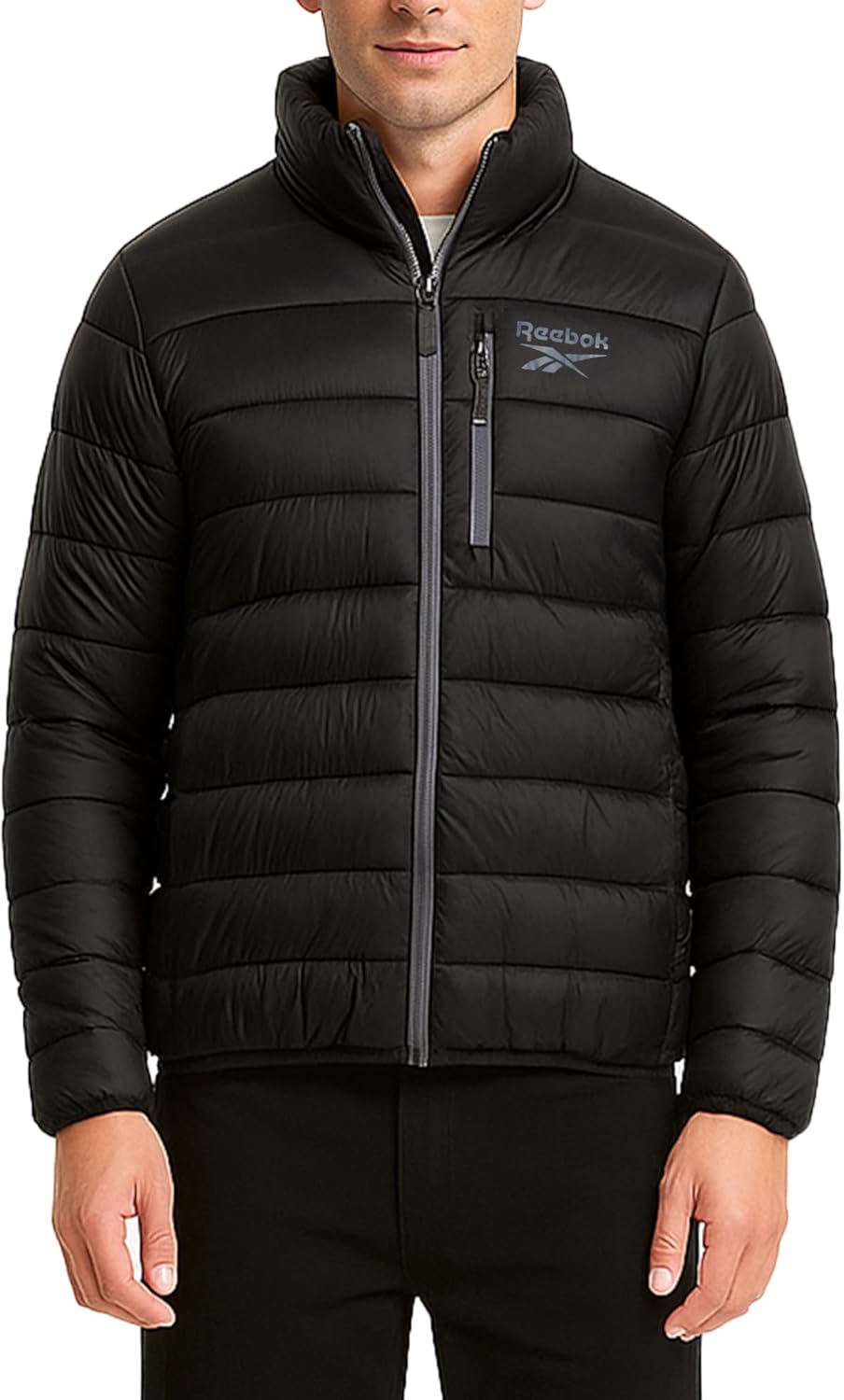Reebok Mens Winter Jacket - Windproof Water Resistant Quilted Winter Coat - Lightweight Insulated Puffer Jacket for Men